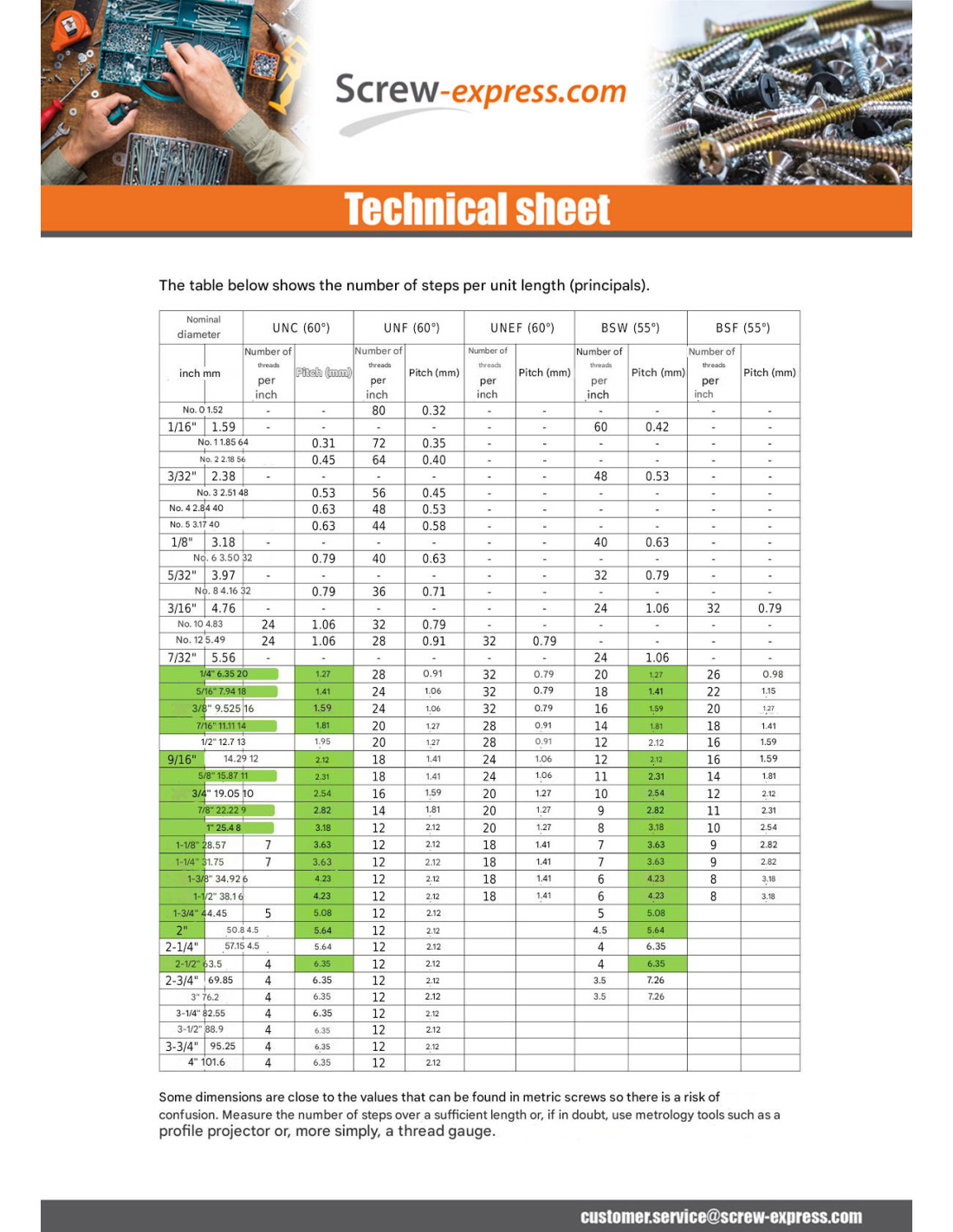 - Nut Unc Unf BSW