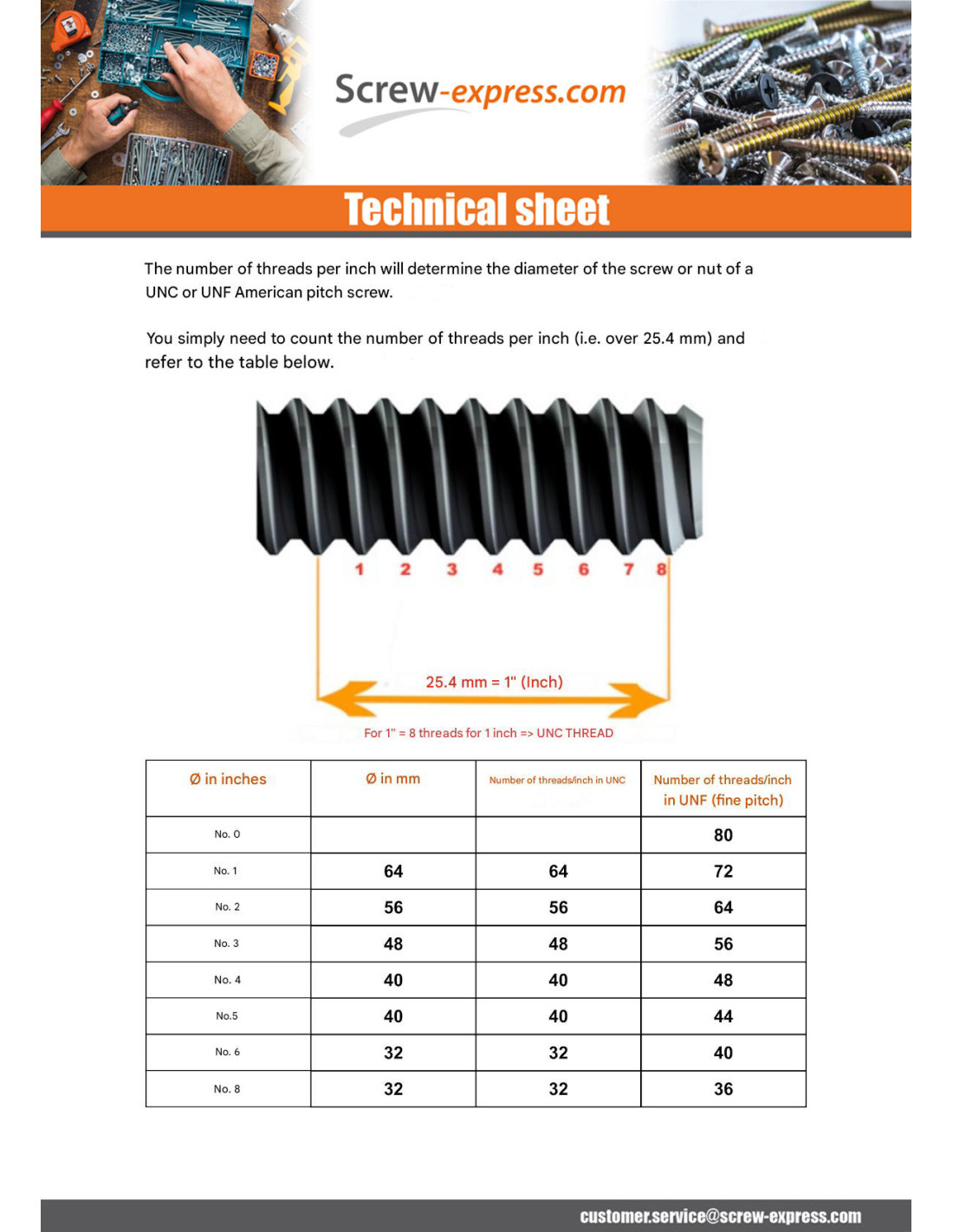 How to determine the diameter of a UNC or UNF screw:
