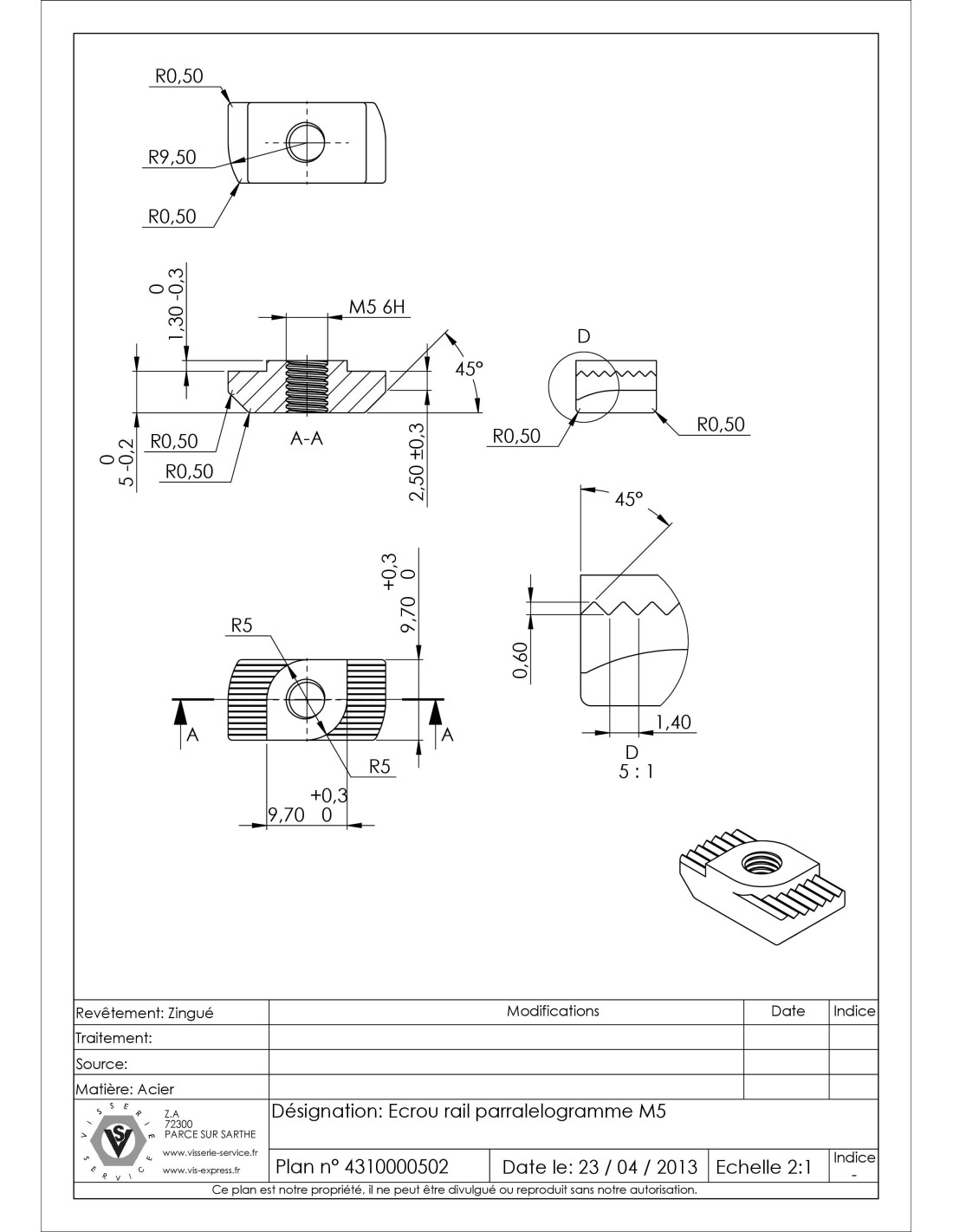 Nut Rail PARALELOGRAM M5 Zinc Plated