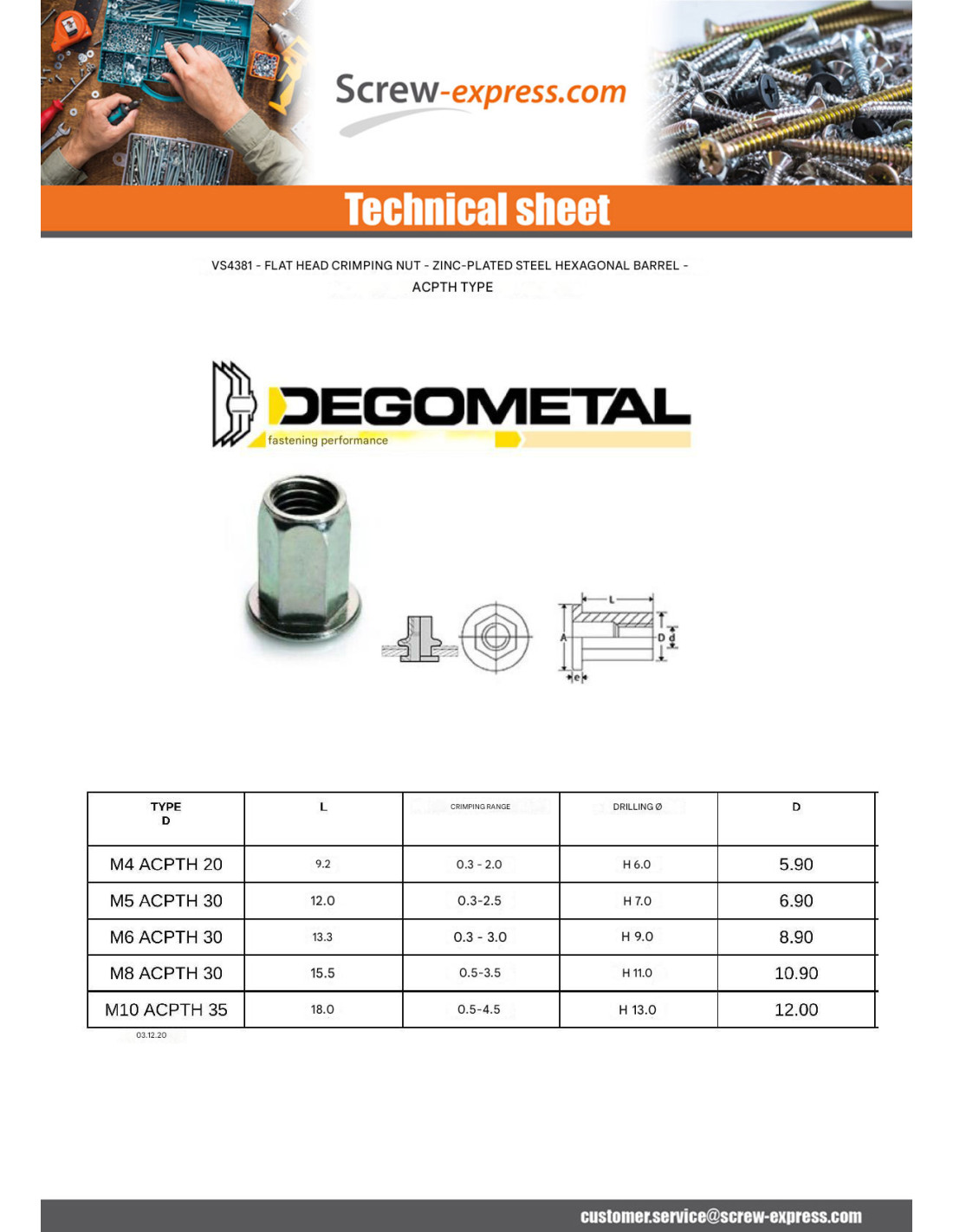NUT RIVET HEXAGONAL FLAT HEAD ACPTH