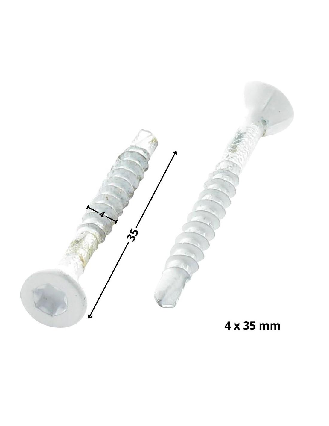 1 x Chipboard Screw Medium Countersunk Head With Serration T20 4X35 Thread Length: 24 Zinc Plated Ral9010/Pure White