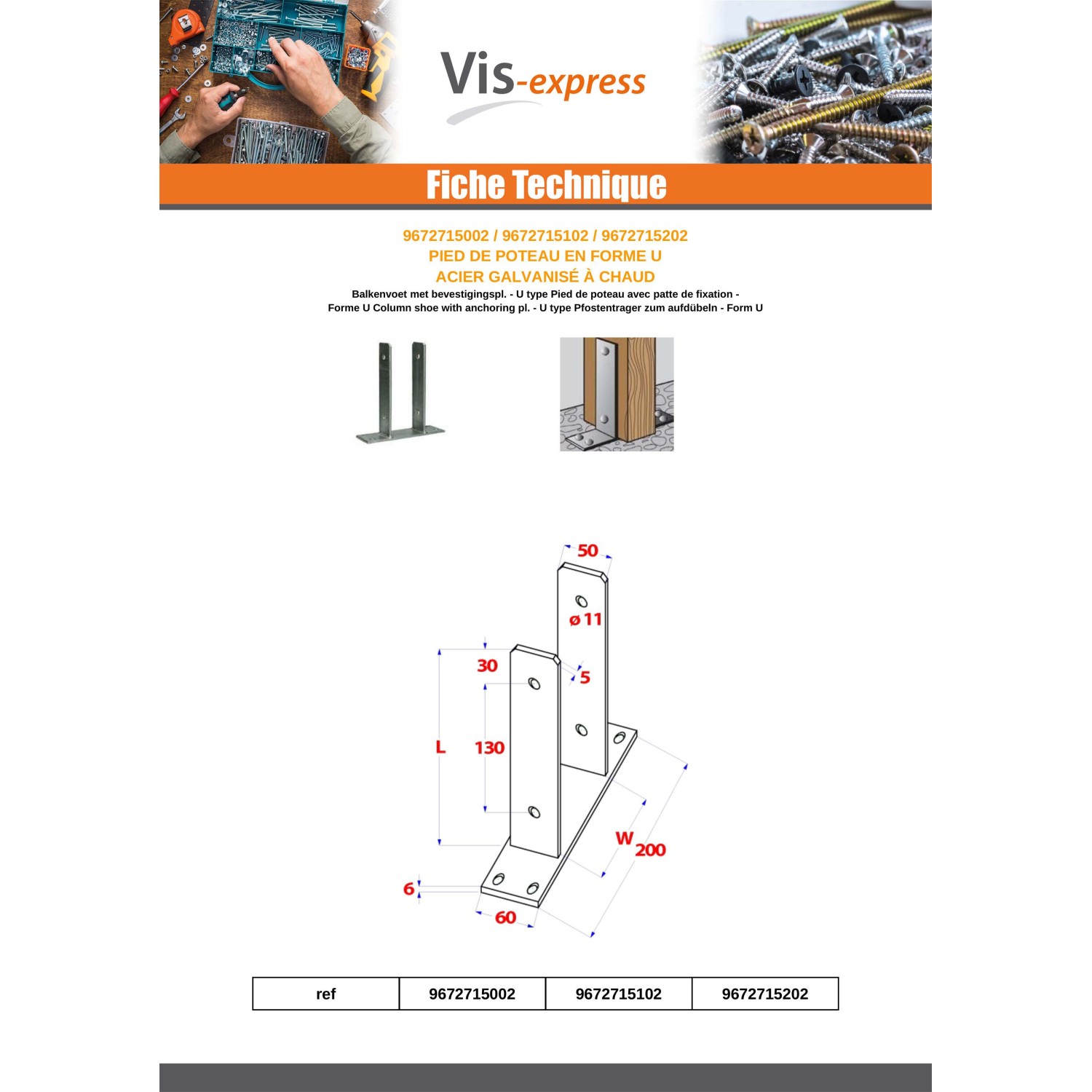 Pfostensockel form Head 70X110X8 Hot Dip Galvanized