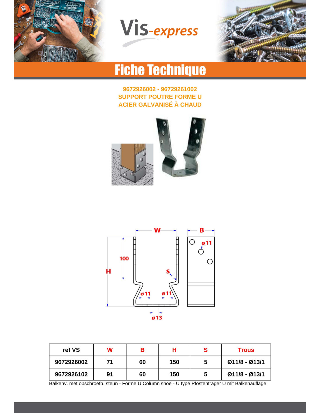 Pfostensockel form U 71X50X200 Hot Dip Galvanized