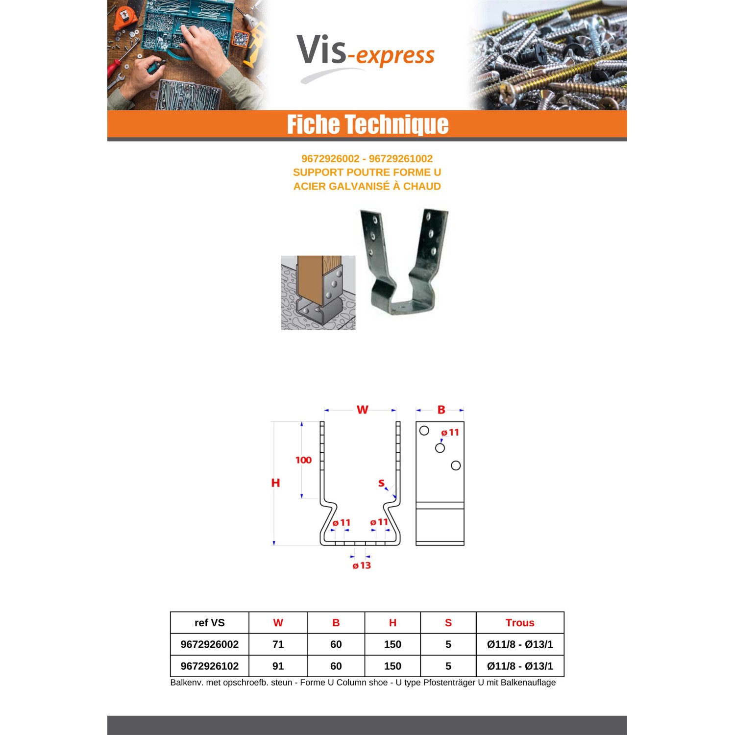 Pfostensockel form U 60X100X81 Hot Dip Galvanized