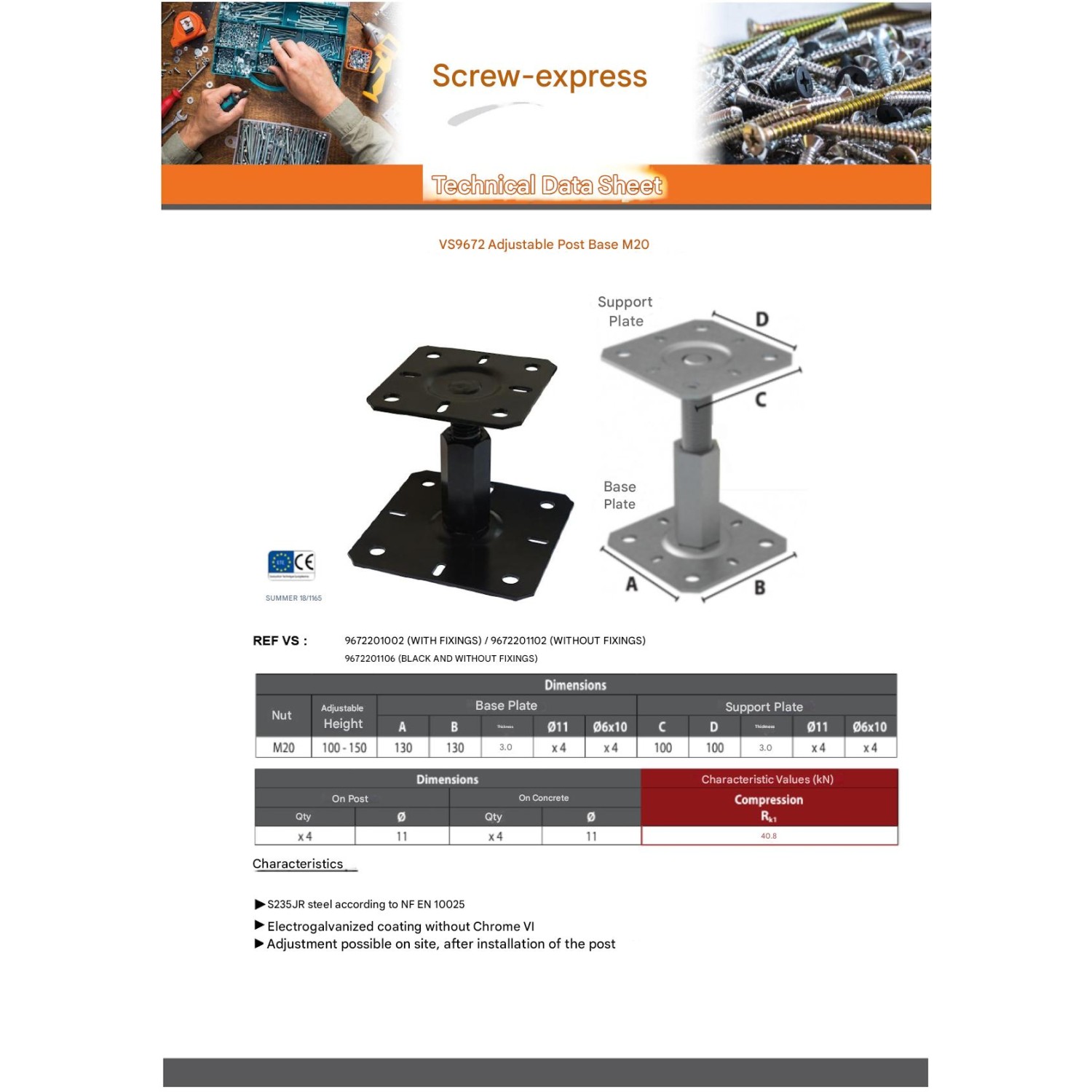 Pfostensockel Adjustment With FIXINGS 130X130