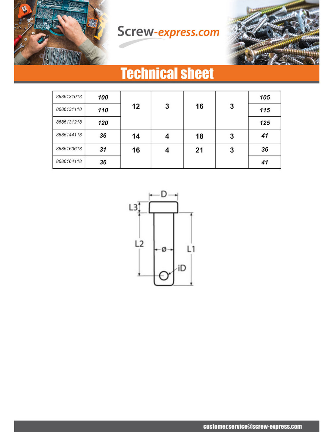 PIN FLAT HEAD WITH HOLE STAINLESS STEEL A4