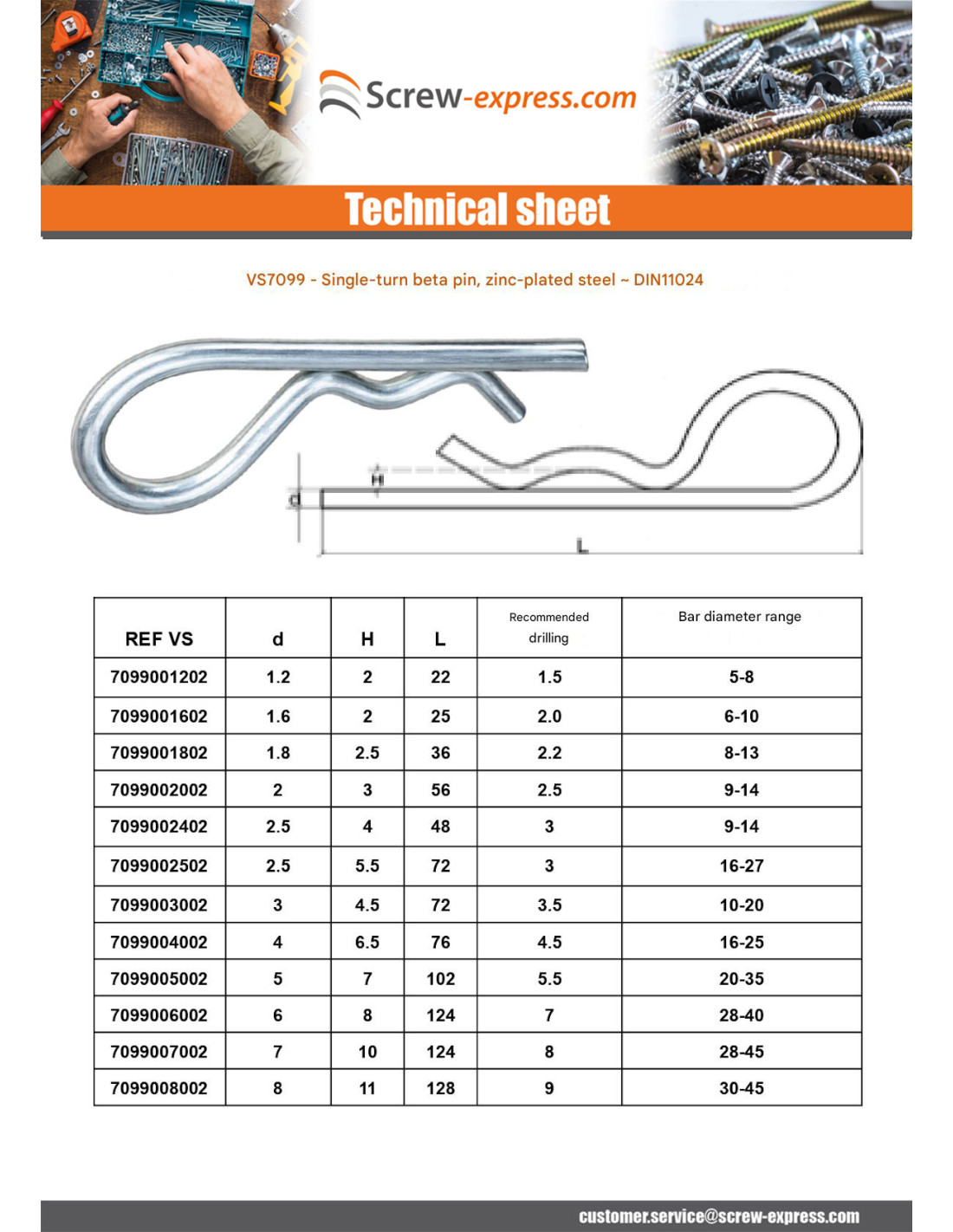 Diameter = 2, Coating = Zinc Plated, Material = Steel, Norm = VS7099 SIMILAR DIN11024, Product Family = Pin