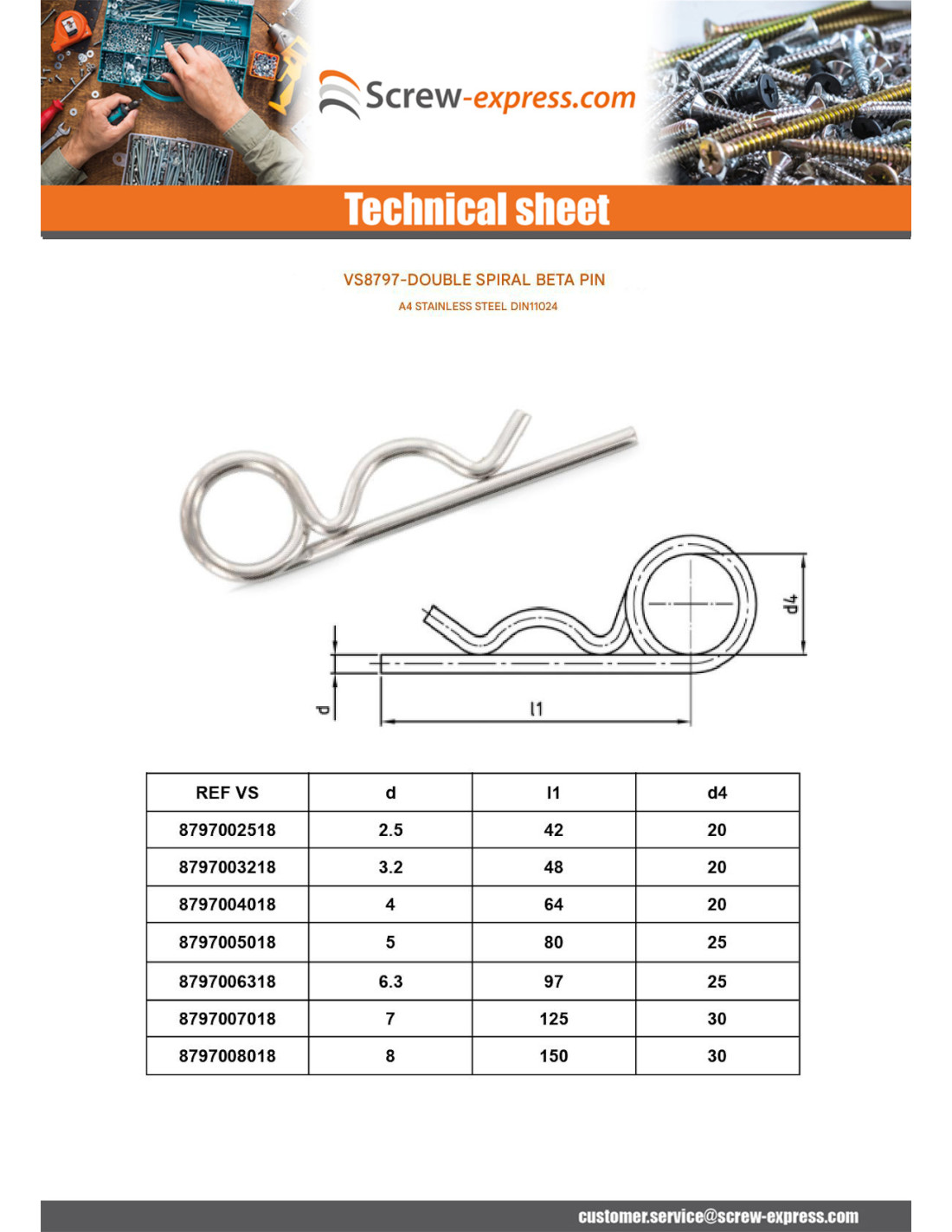 PIN R CLIP DOUBLE SPIRE LINCH PIN HOLE STAINLESS STEEL A4