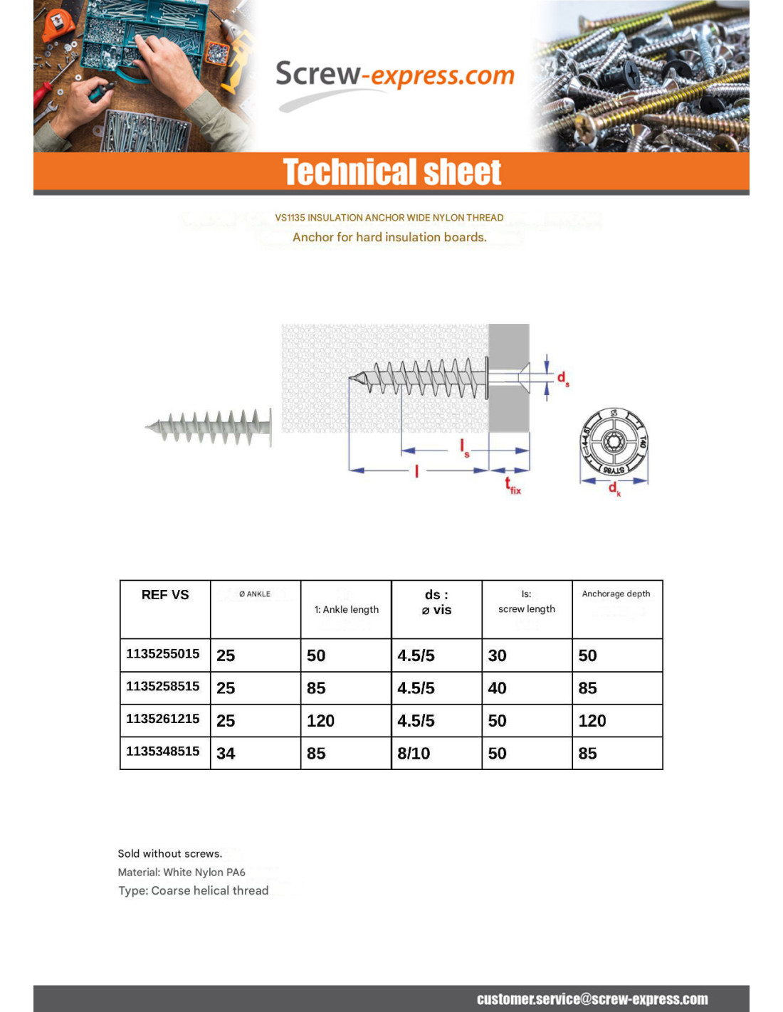 Insulation dowels thread FAT 25X50 Nylon Other Reference : 3663072493384