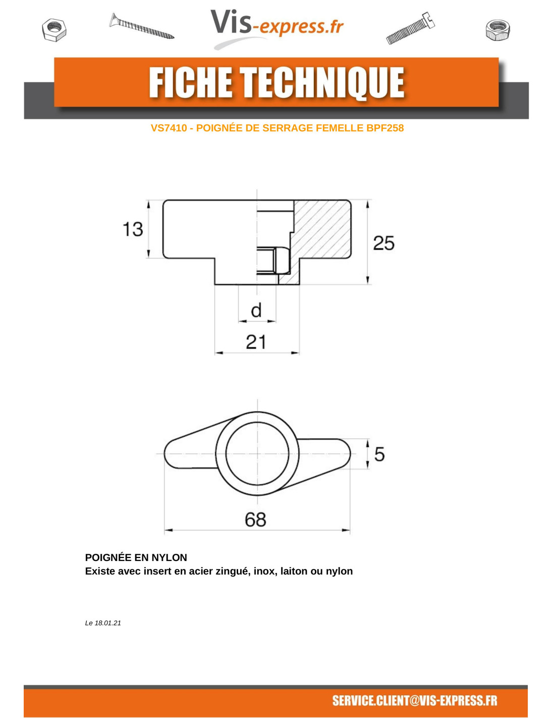 1 x Female clamping handle black nylon Self Tapping Insert Zinc Plated M8