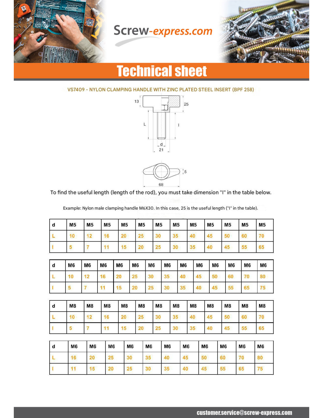 Diameter = M5, Length = 40, Material = Nylon