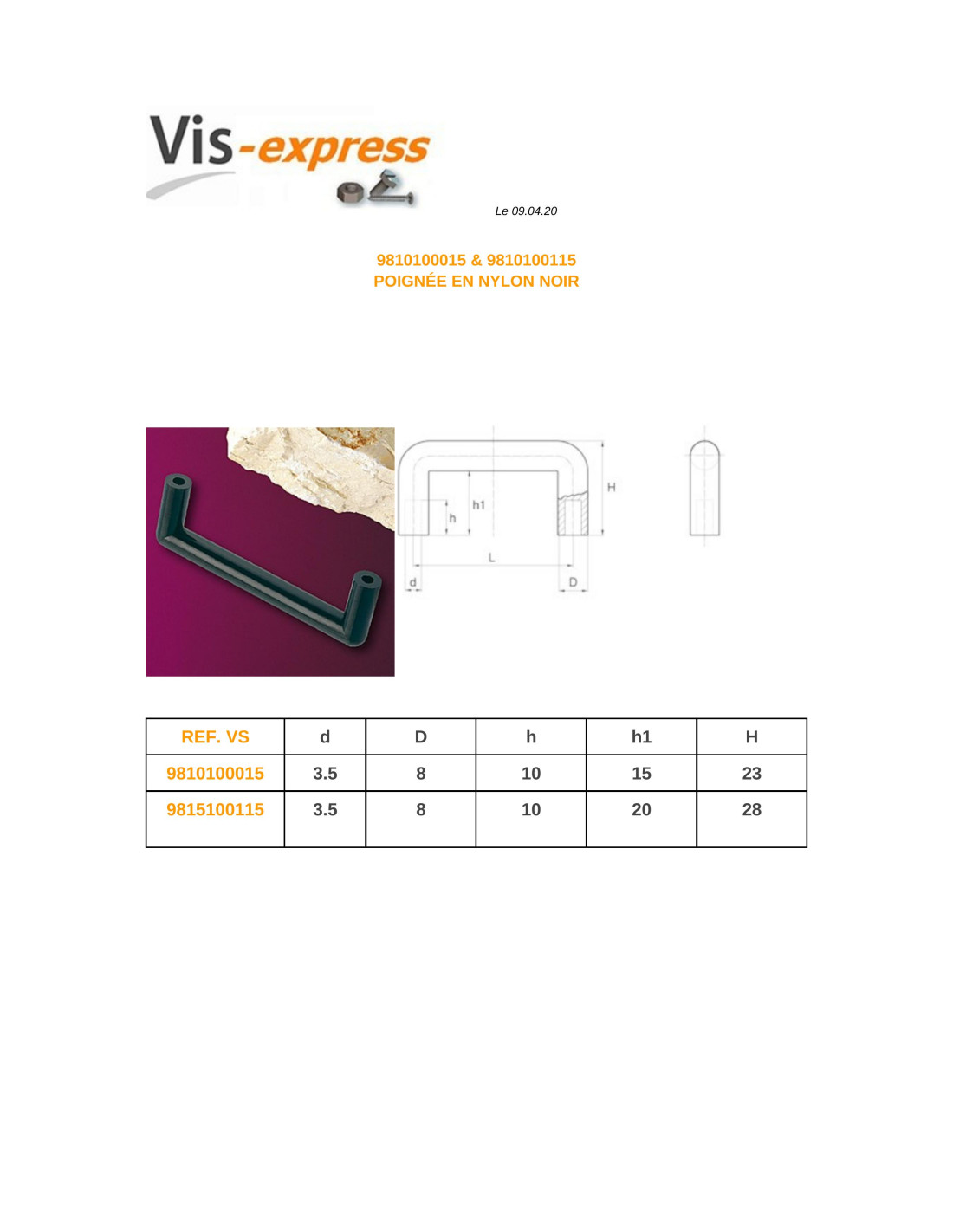 HANDLE Nylon Black Length 120 Other Reference : PC12008 3663072493131