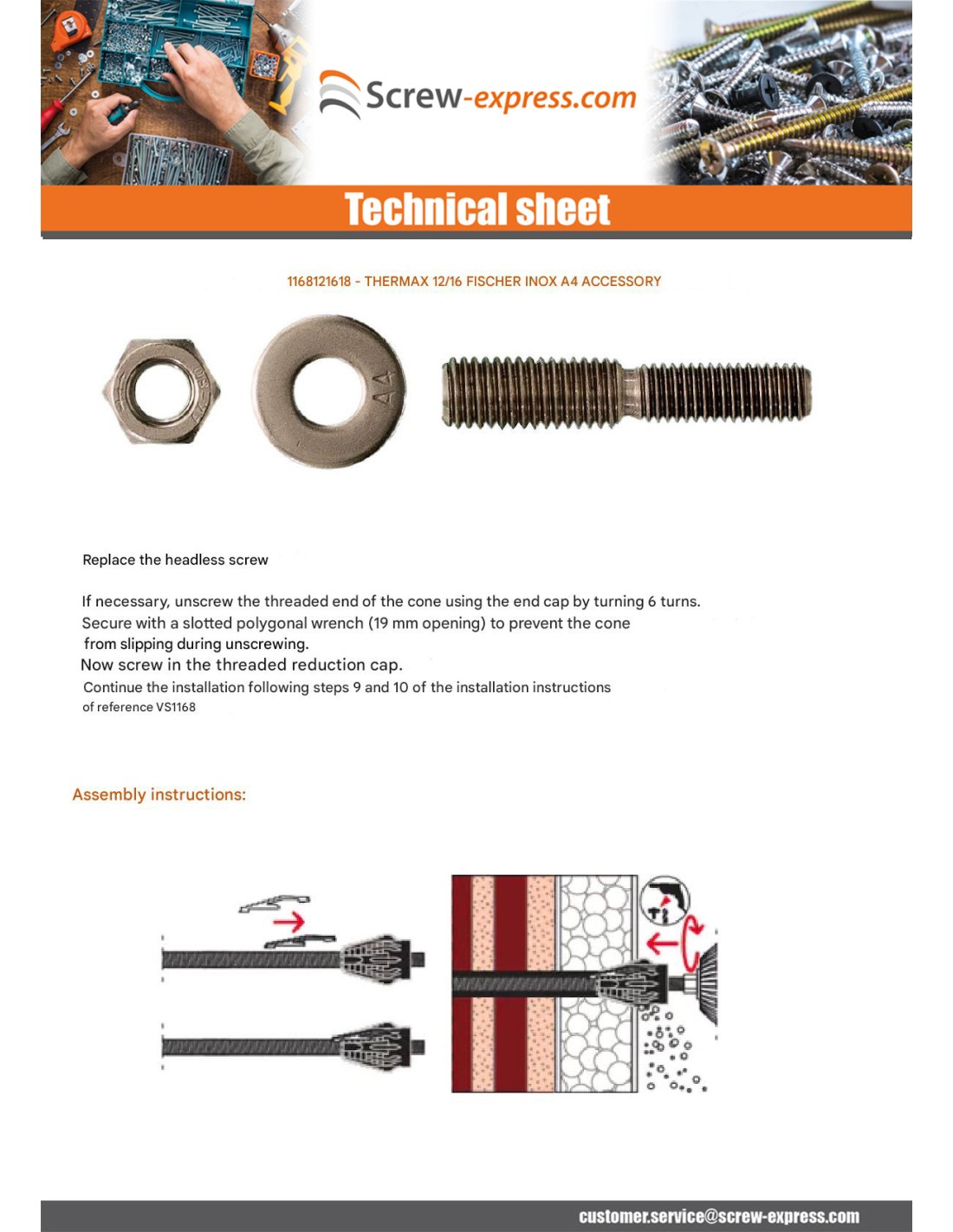 Remote mounting THERMAX Fischer 8/60 M6 Zinc Plated