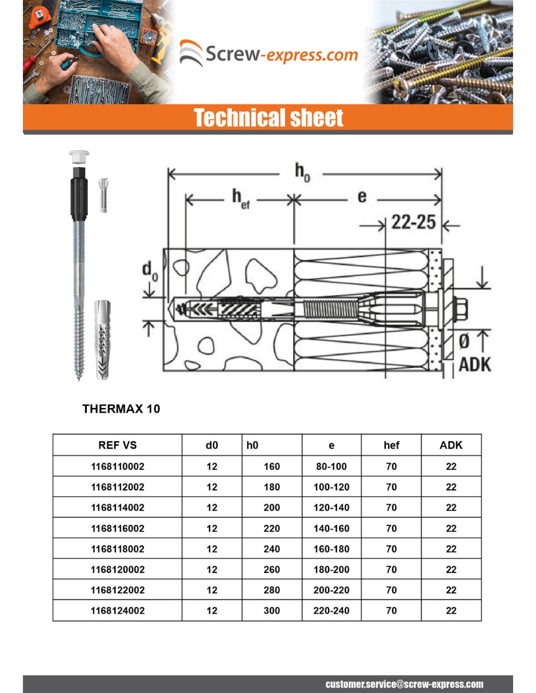 1 x Remote mounting THERMAX Fischer 10/180 M8 Zinc Plated