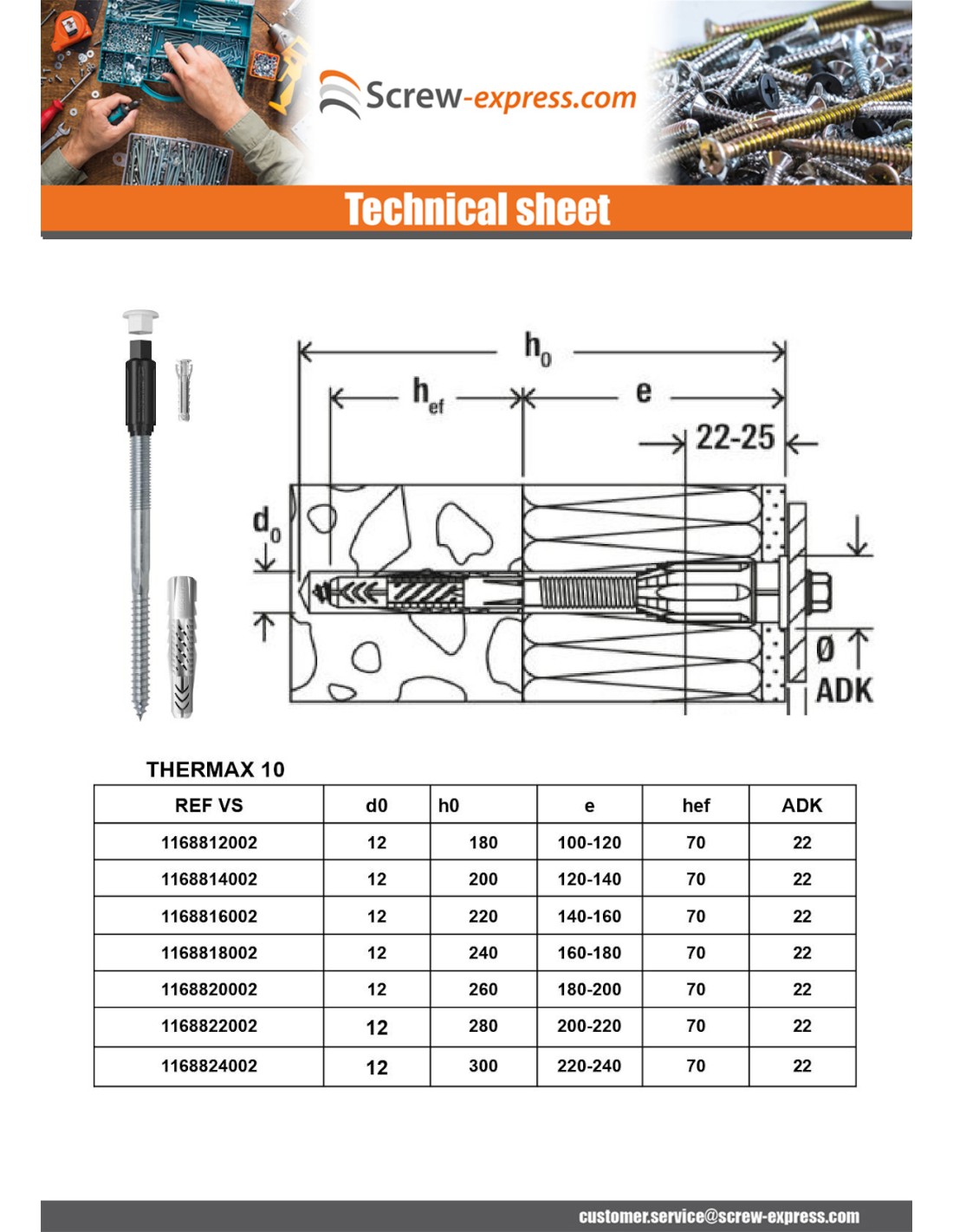 Remote mounting THERMAX Fischer 8/120 M6 Zinc Plated