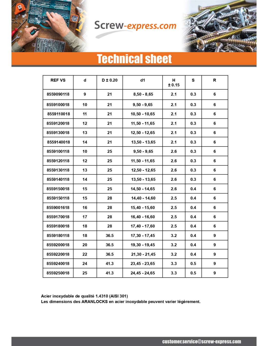 Rondelle de blocage" ARANLOCK 9.5X18X0.3 Stainless Steel