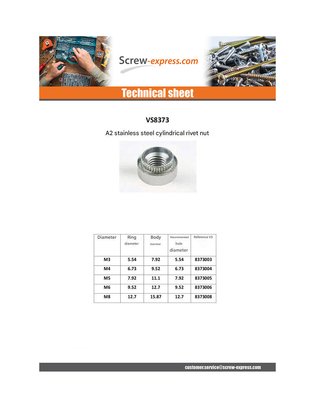RIVET BUSHES CYLINDRICAL THICKNESS MATERIAL STAINLESS STEEL A2