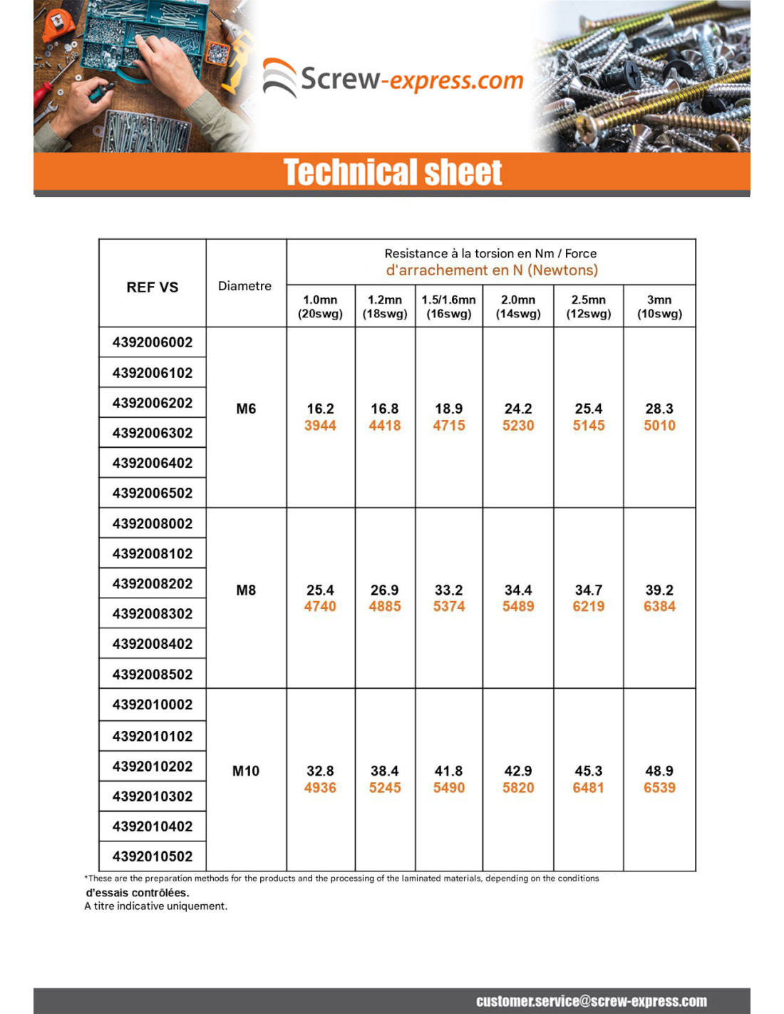- Technical sheets