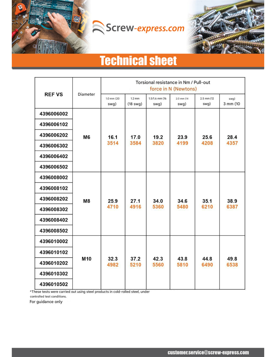 | Diameter | M3 | M4 | M5 | M6 | M8 | M10 | M12 |