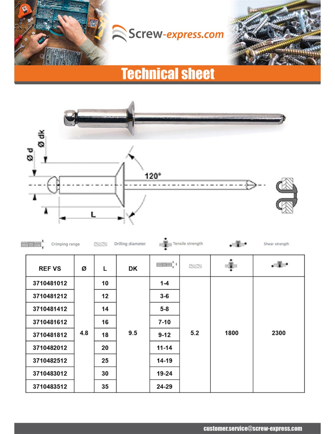 Peel Rivet GOSTAR Aluminum Steel Rod TRS 4X20 Ral9002/Grey White