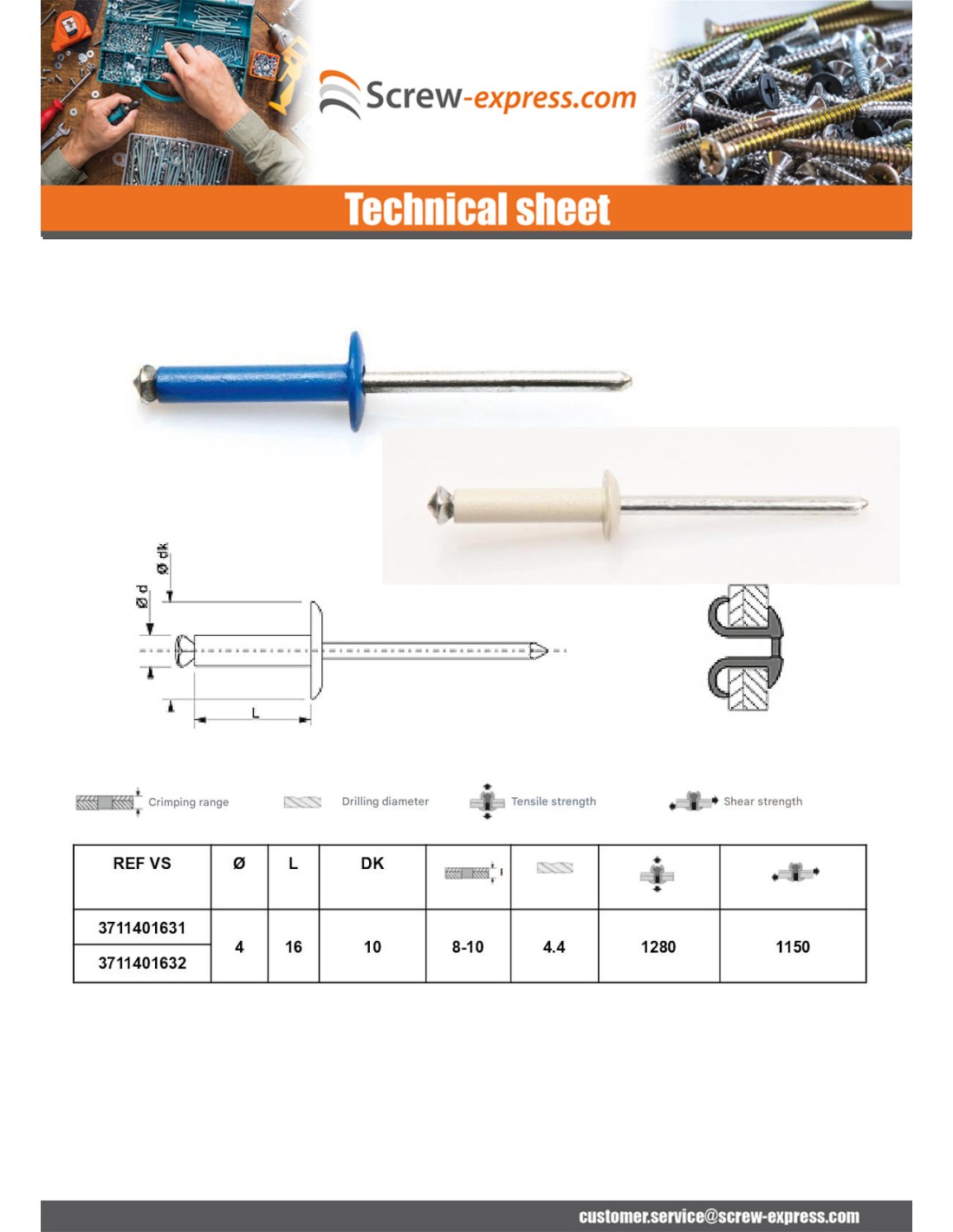 Peel Rivet GOSTAR Aluminum Steel Rod Large Head 4X16 Ral9002/Grey White