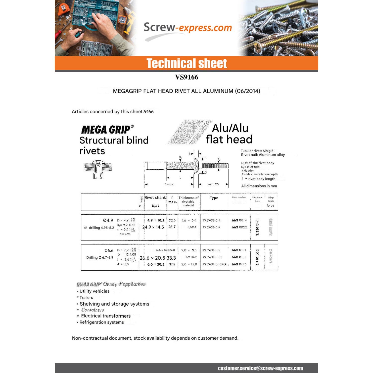 RIVET MEGAGRIP ENTIRELY ALUMINIUM 6.6X14.1 FLAT HEADOTHER REFERENCE : 3663072176935 0002876 OVD0173 OVD0173 AN 6630111