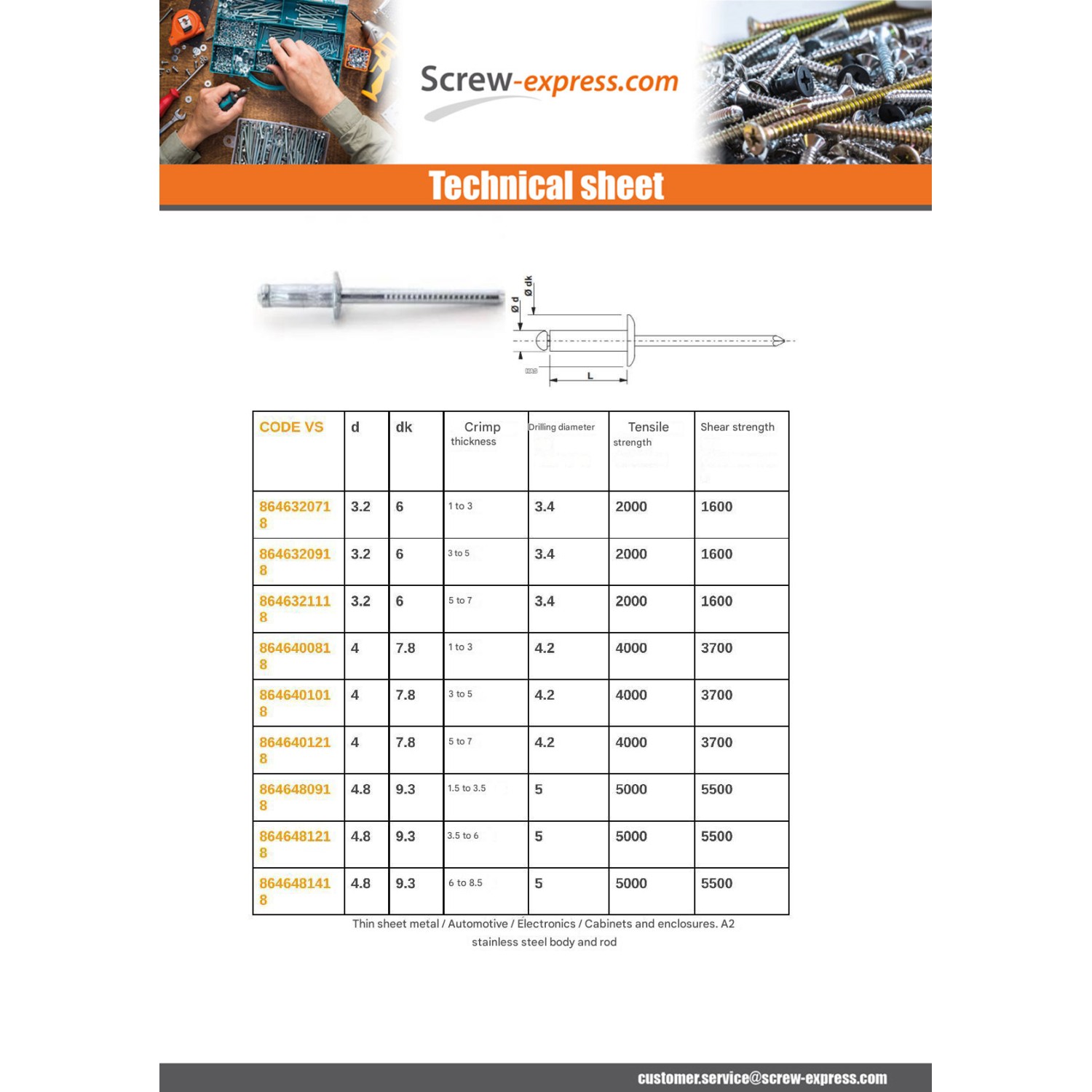 Rivet GOMUST TRS Stainless Steel A2 3.2X7