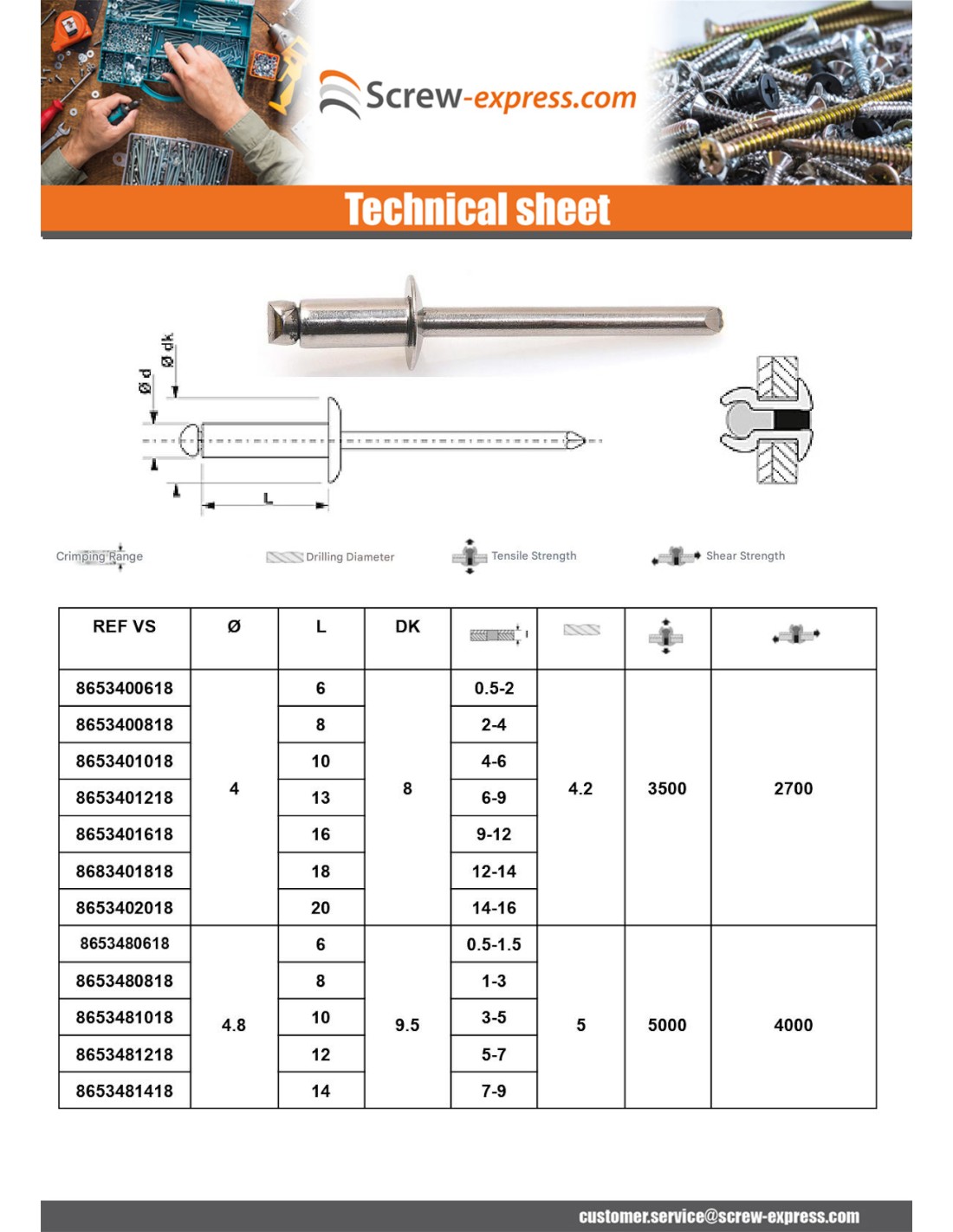 Blind Rivet All Stainless Steel TRS 4X8 Thickness Of Panel 2 to 4
