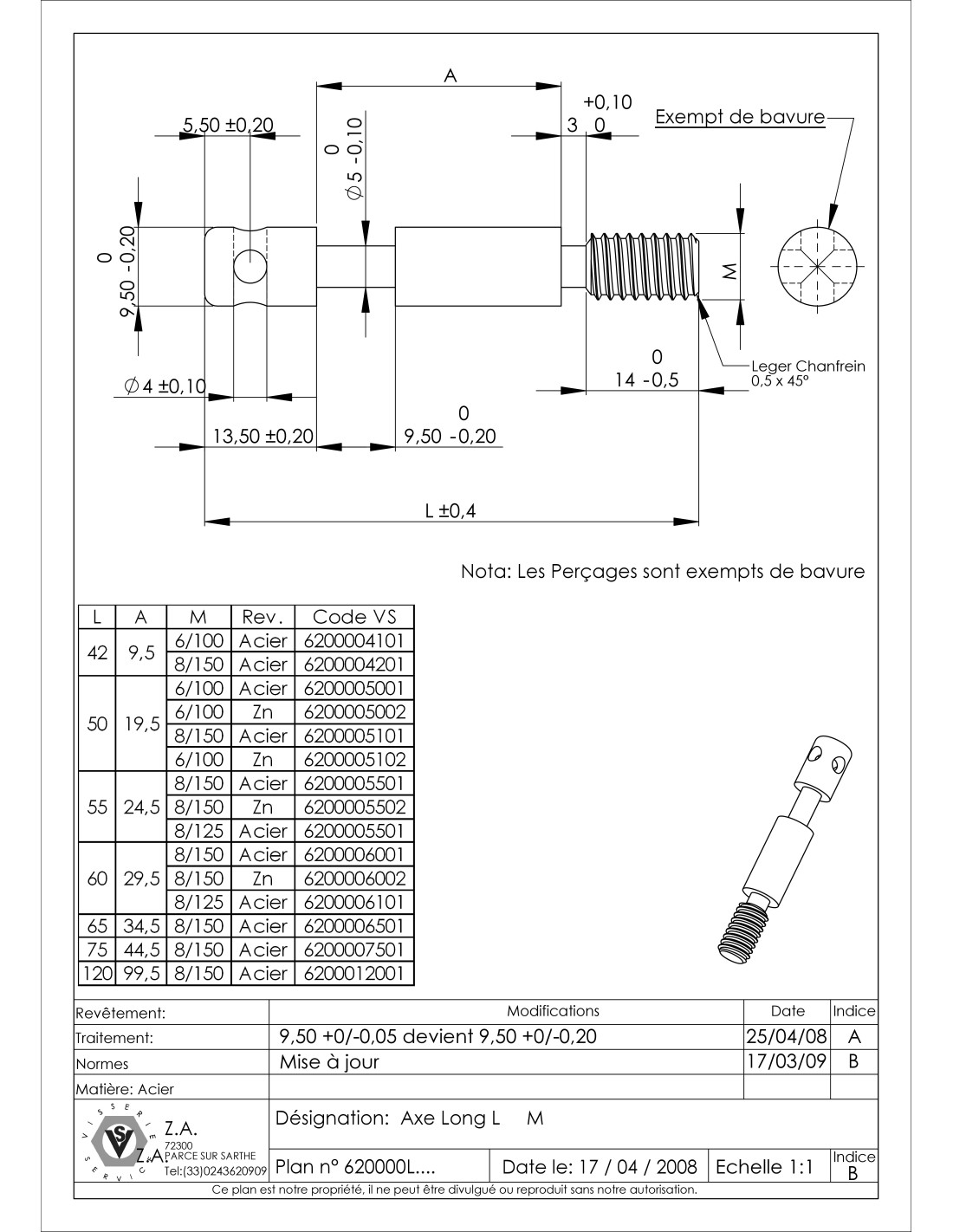 Rod Zinc Plated long M6X51 Pitch 100 Head 8.5 Other Reference : 3663072116153 PR403 bbb0000206