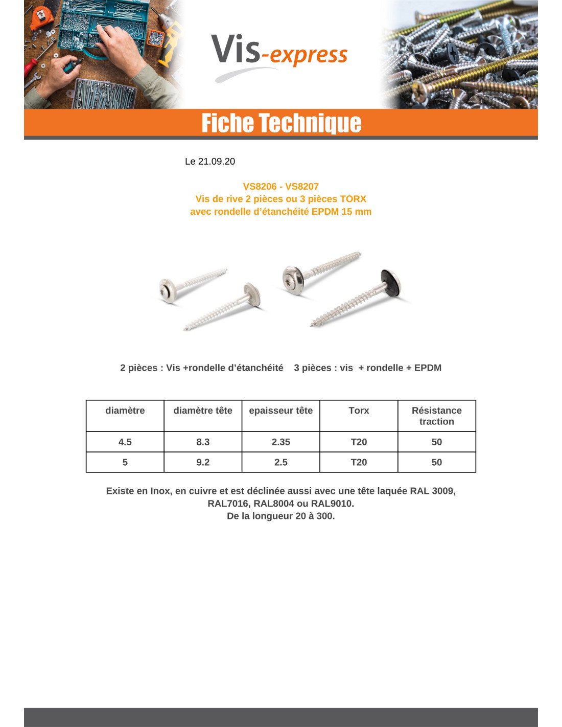 Rsd Csk Woodscrews Bonded Sealing Washer Pan Countersunk Head T20 Stainless Steel A2 RAL8011 4.5X35 Neoprene Bonded Sealing Washer Epdm Other Reference : 9087222801145 3663072556669