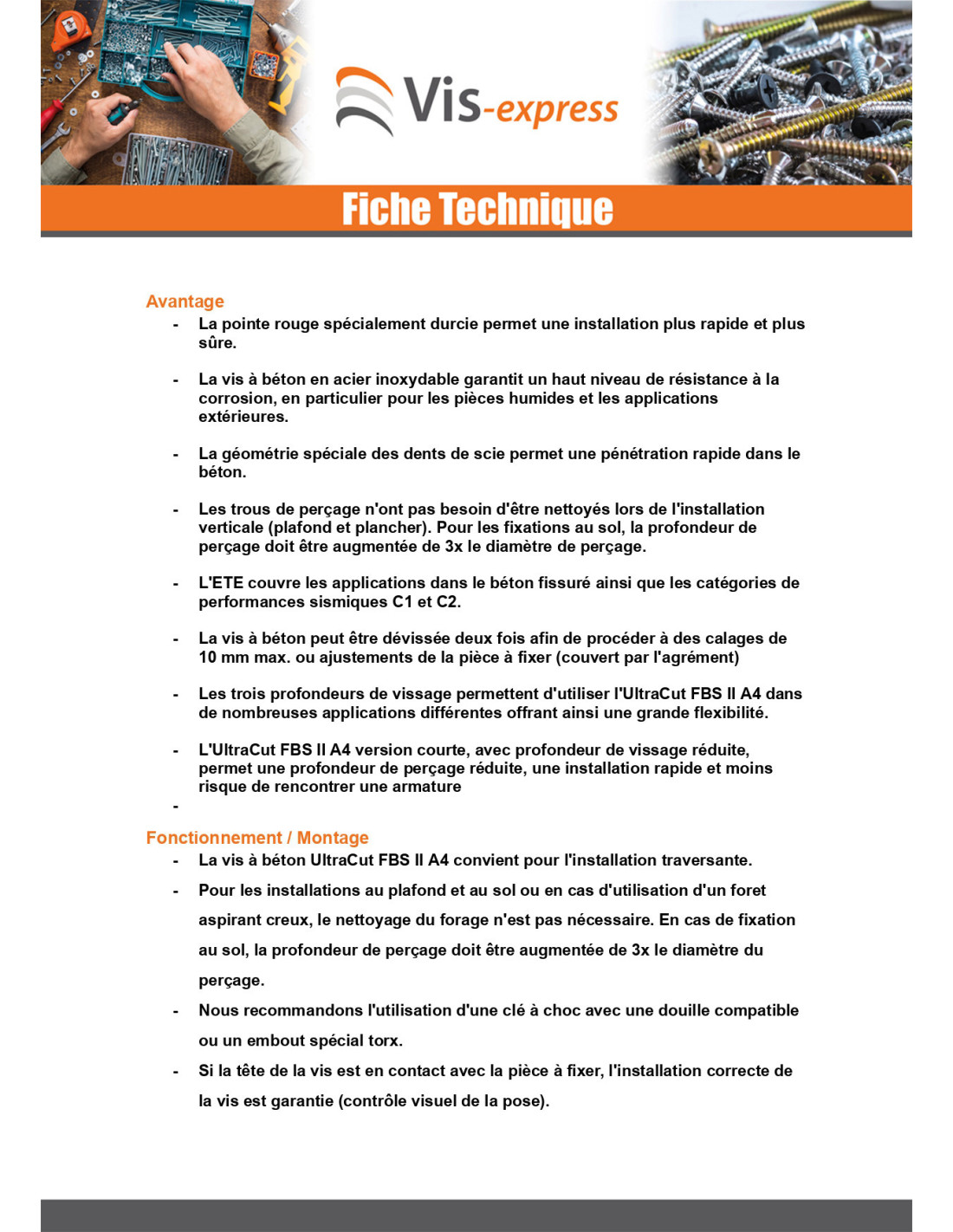 Screw For Concrete Countersunk Head FISCHER ULTRACUT FBS II SK 10X65 Stainless Steel A4