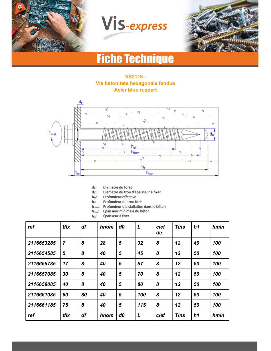 Screw For Concrete Hexagonal Head 6.5X115 Blue Ruspert