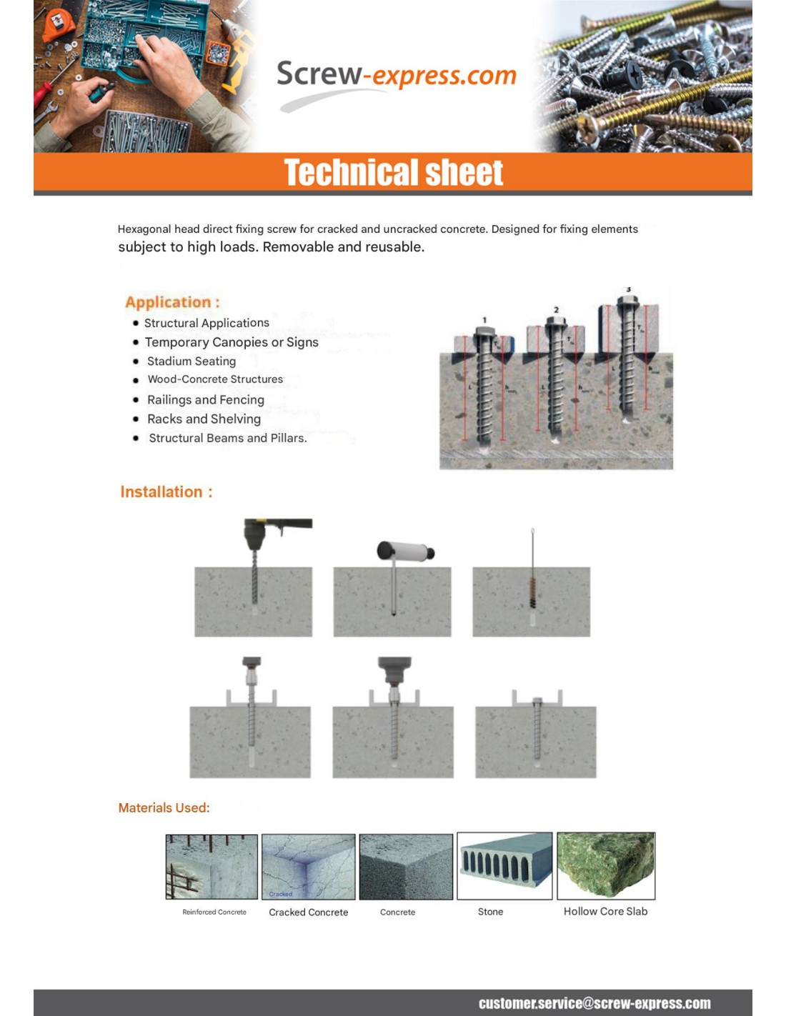 1 x Screw For Concrete Hexagonal Head Flange T15 10X100 Zinc Plated