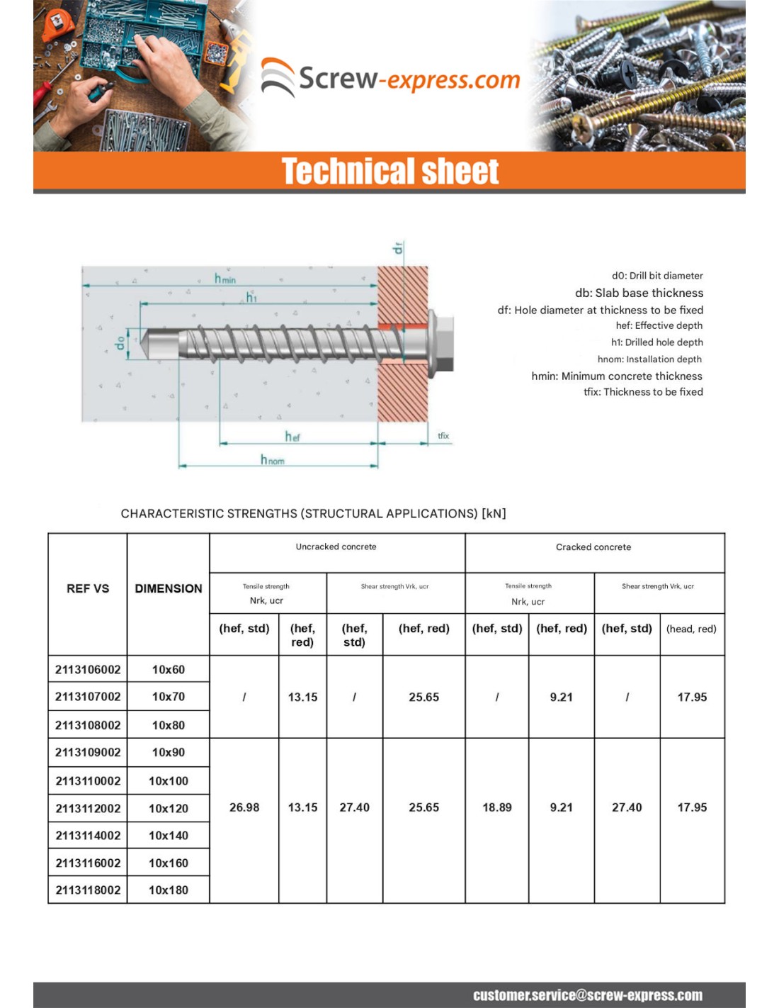 Screw For Concrete Hexagonal Head Flange T10 6X70 Zinc Plated
