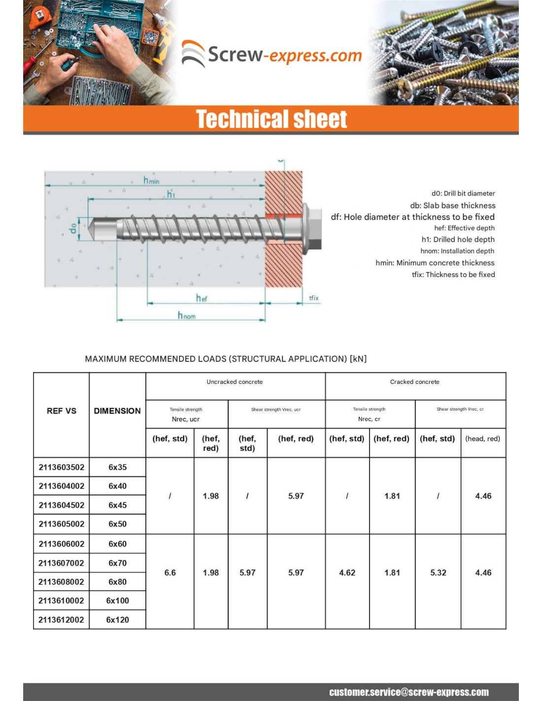 Screw For Concrete Hexagonal Head Flange T8 5X40 Zinc Plated