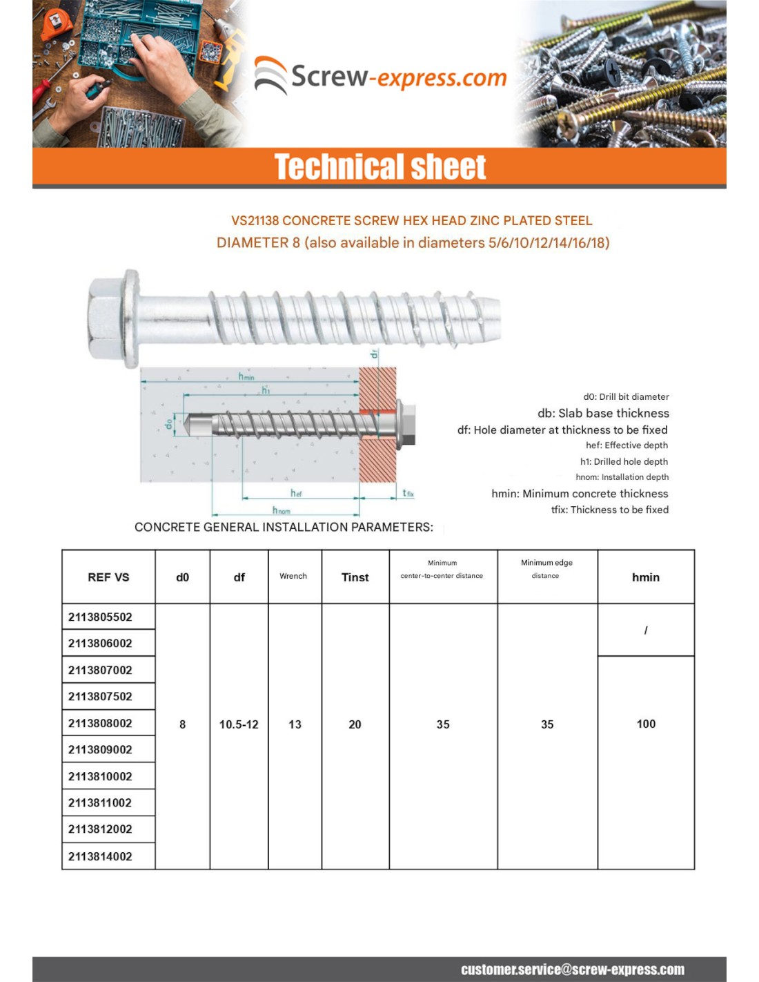Screw For Concrete Hexagonal Head Flange T21 14X160 Zinc Plated
