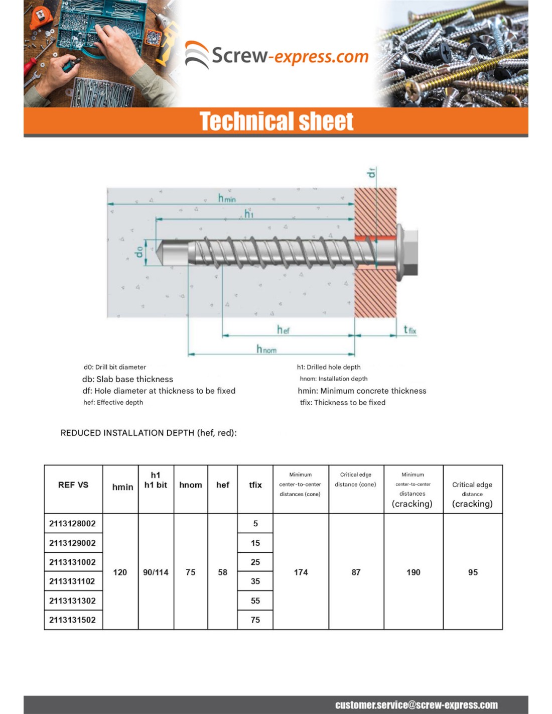 Screw For Concrete Hexagonal Head Flange T13 8X75 Zinc Plated
