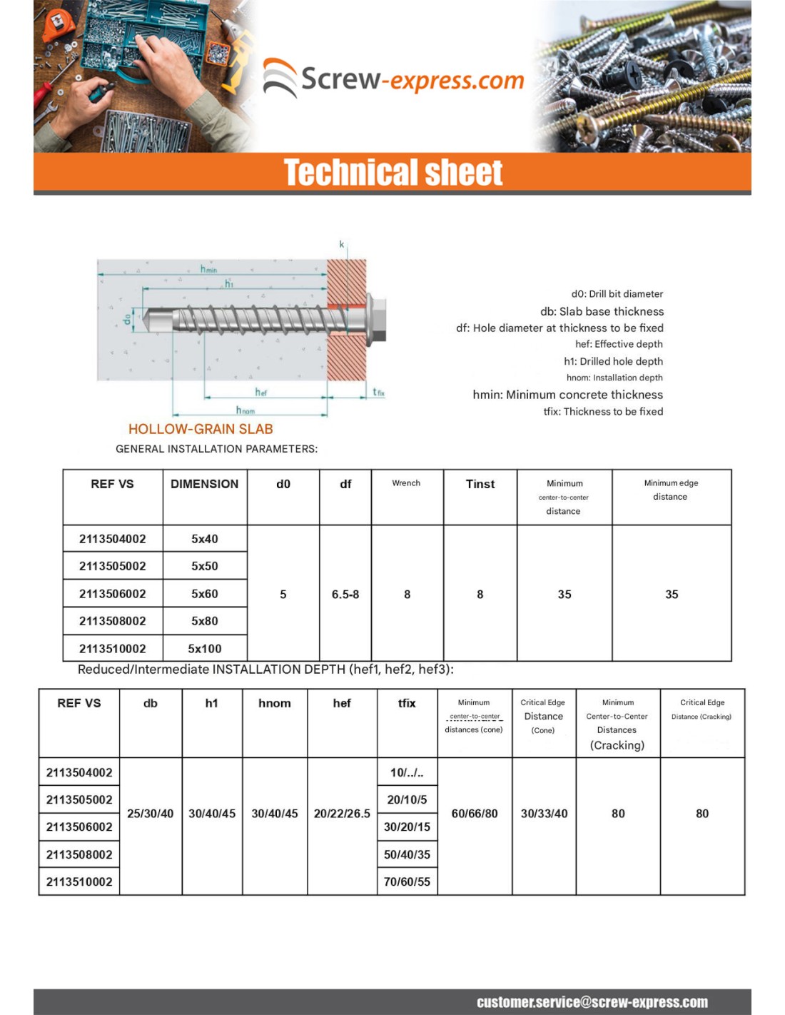 1 x Screw For Concrete Hexagonal Head Flange T8 5X80 Zinc Plated