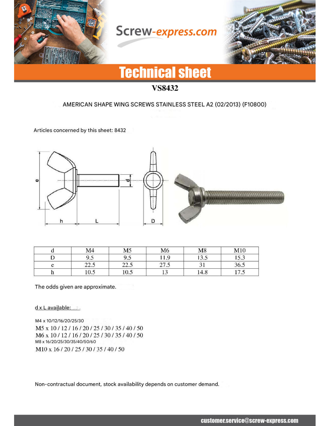SCREW for WING FORM AMERICAN STAINLESS STEEL A2