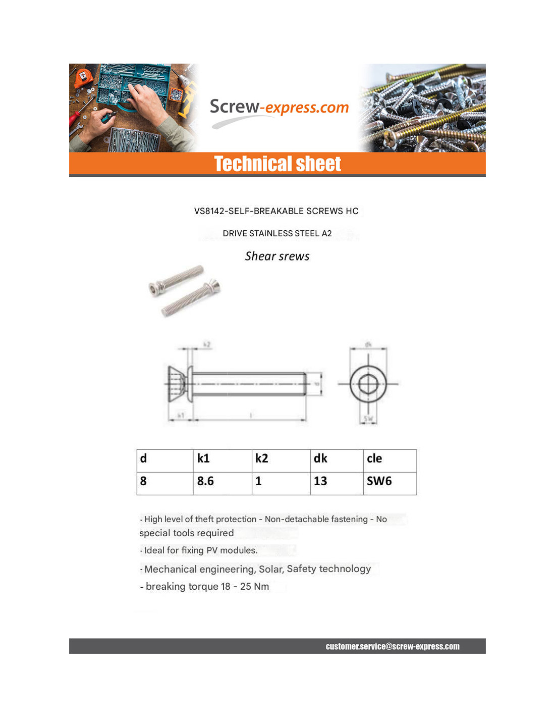 SCREW SECURITY SHEAR HEXAGON RECESS STAINLESS STEEL A2