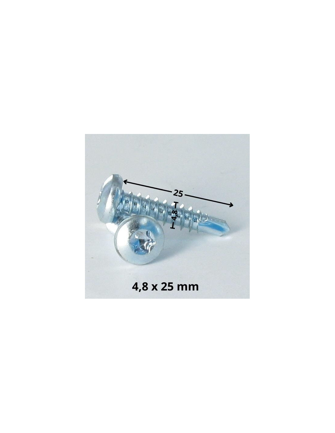 These TCB 4.8x25 TORX T25 self-drilling screws in zinc-plated steel will be used to fix 1.5 mm thick galvanized steel sheet plates to a metal structure as part of the construction of an outdoor shelter. They will be used with ArcelorMittal brand plates, dimensions 1000 x 2000 mm, on steel profiles with a section of 40 x 40 mm.