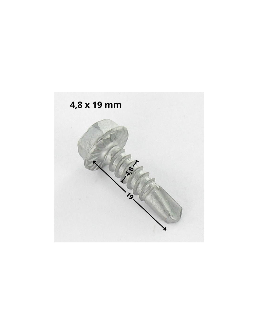 Metal plate fixing Self-drilling screw, hexagonal head, TH 4.8X19, thread, raw steel, Geomet 500A, Diameter = 4.8, Length = 19, Surface Coating = Geomet, Sub-product Family = Hexagonal Head, Material = Steel, Standard = DIN 7504K+ Serrated Base, VS3124, Drive Dimensions = 8mm wrench