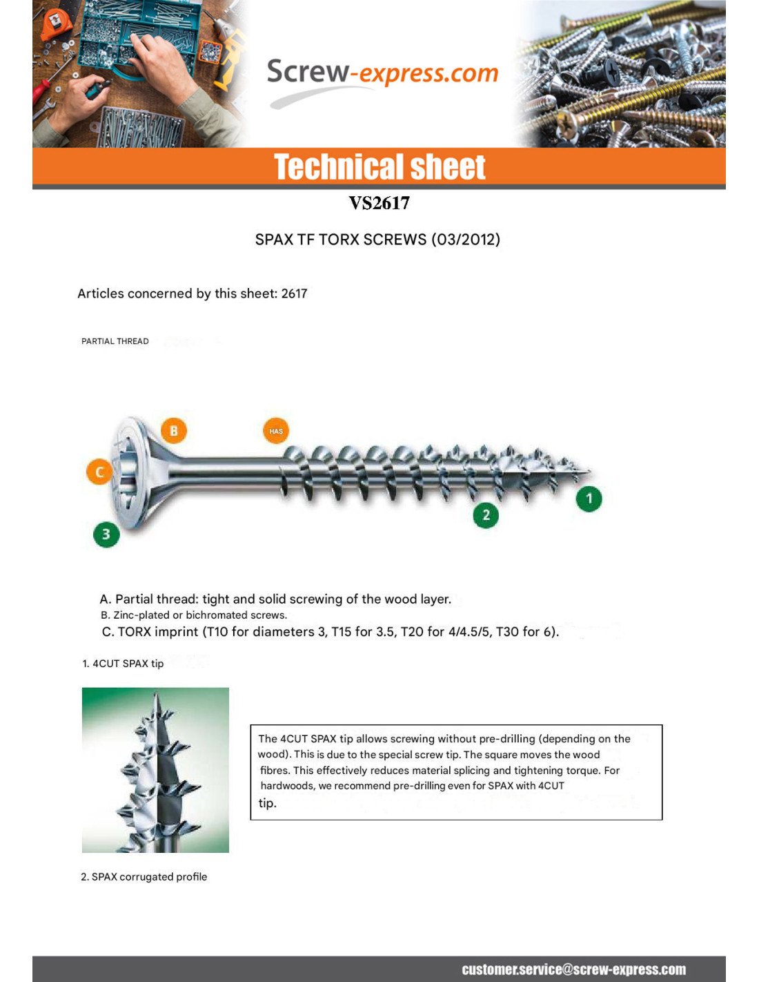 Screw Spax Countersunk Head Torx Partial Thread