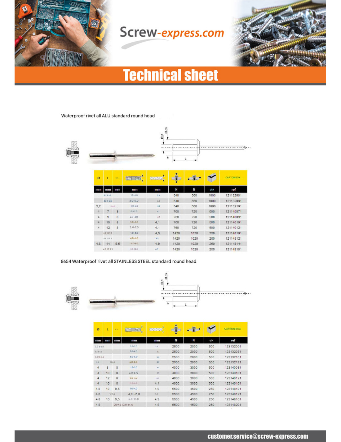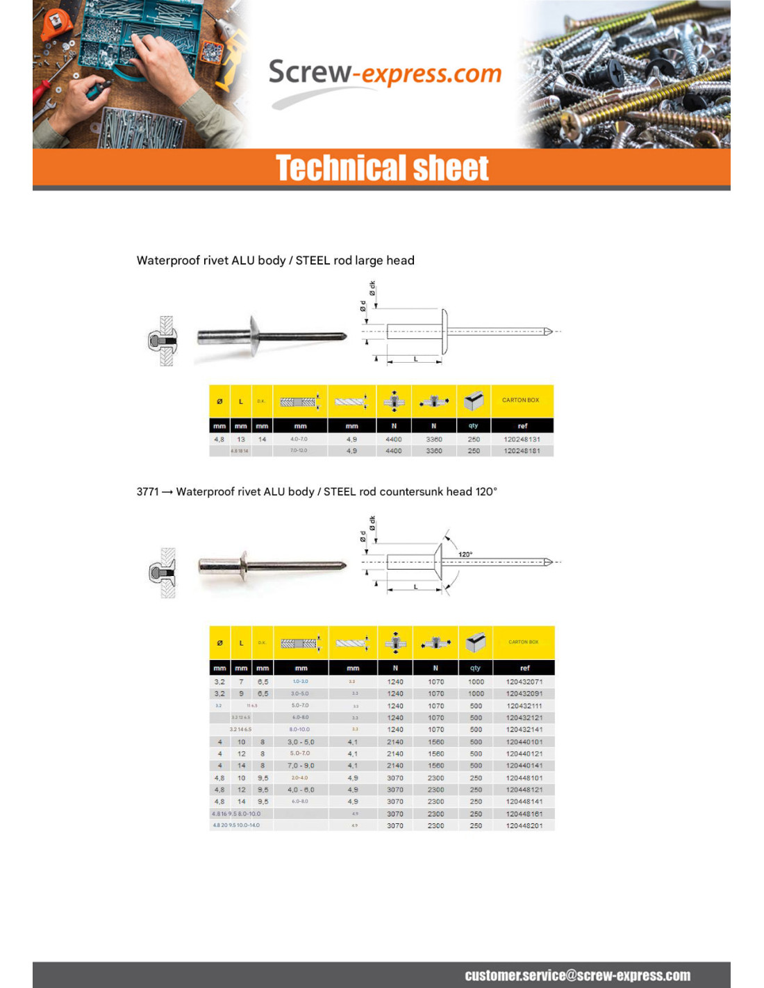 SEALED RIVET BLIND ALUMINIUM TIGE STEEL FLAT HEAD