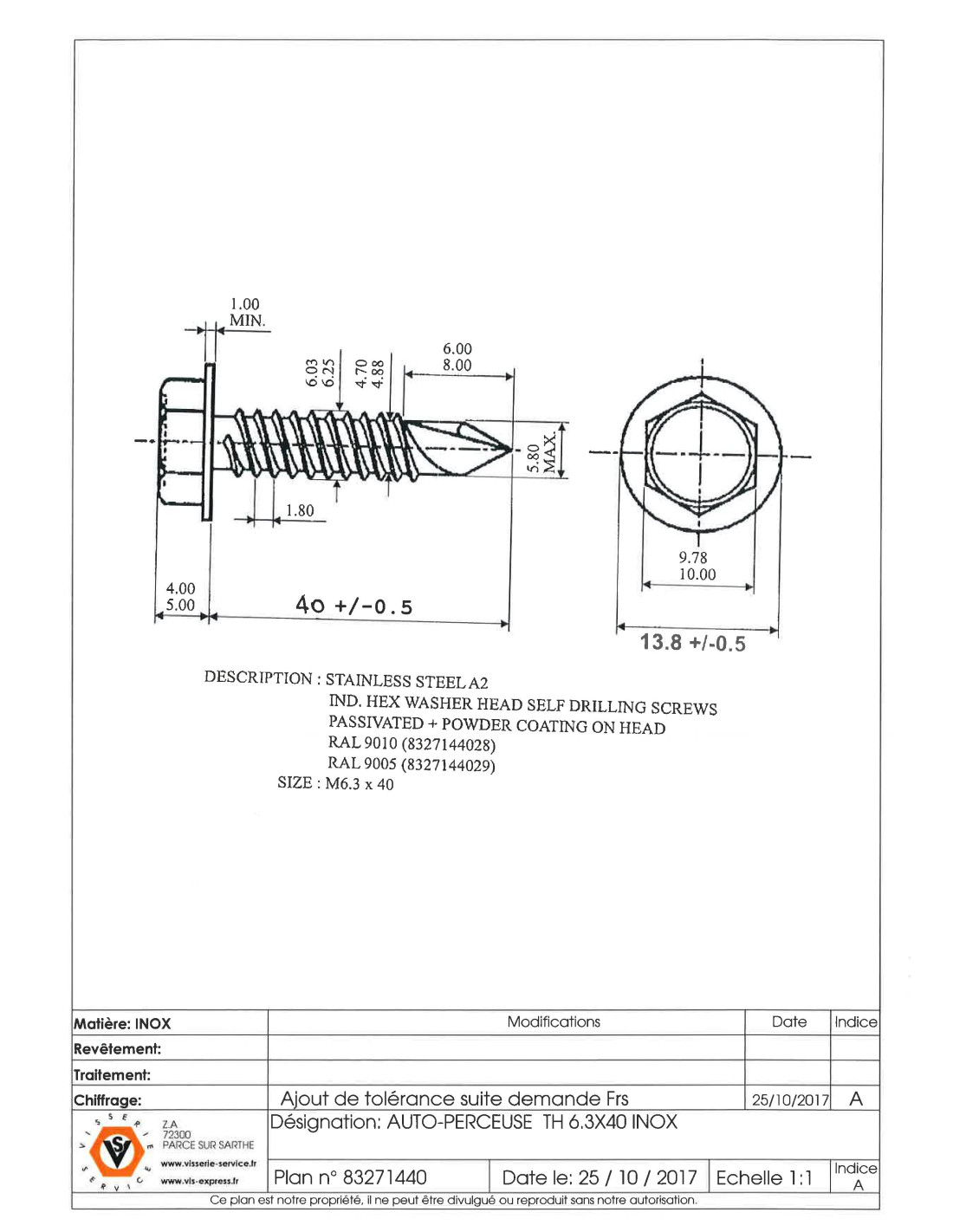 SELF DRILLING STAINLESS STEEL A2 HEXAGONAL HEAD 7504 K