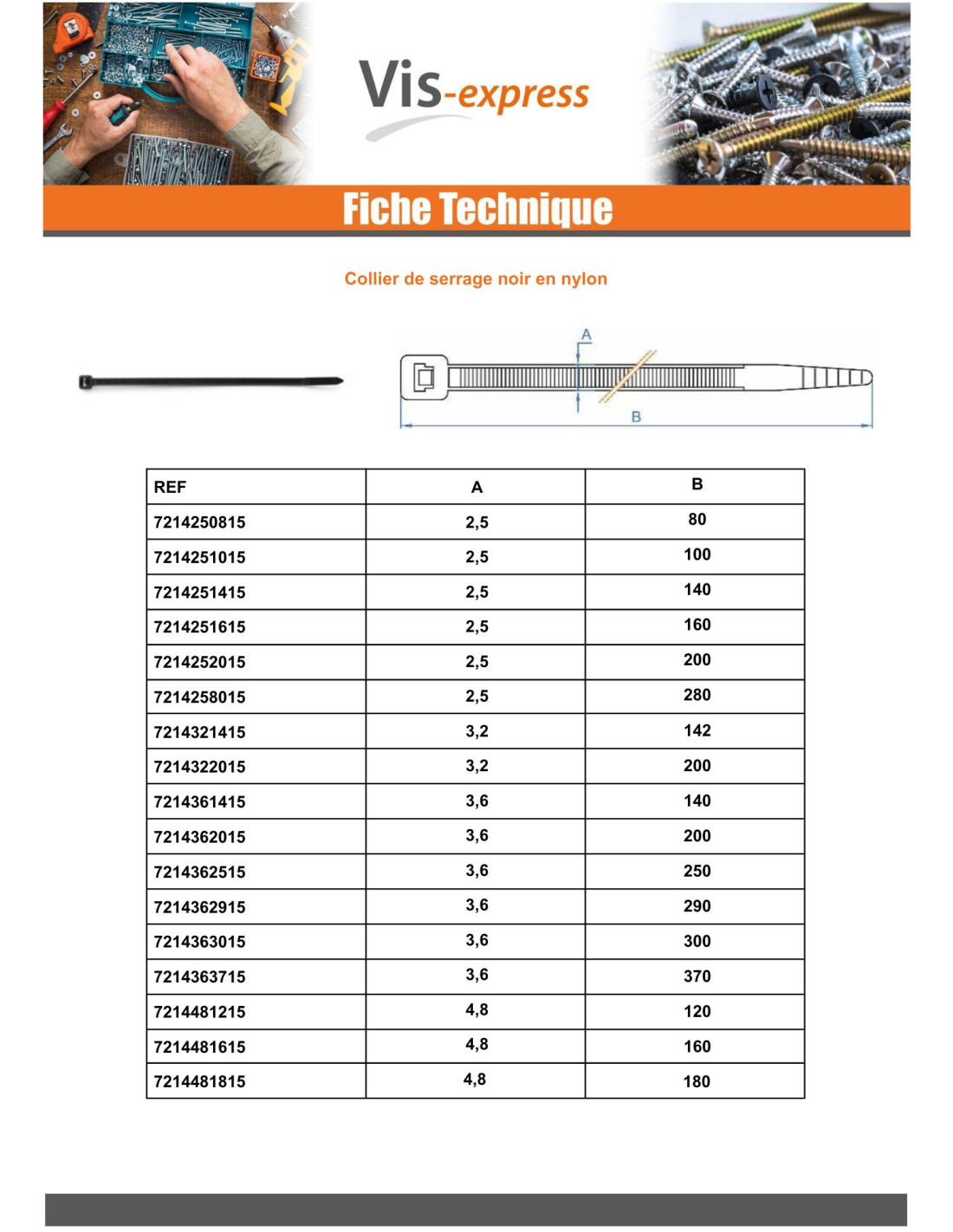 Hose clamp 4.8X250 Nylon Polyamide 6.6 Black