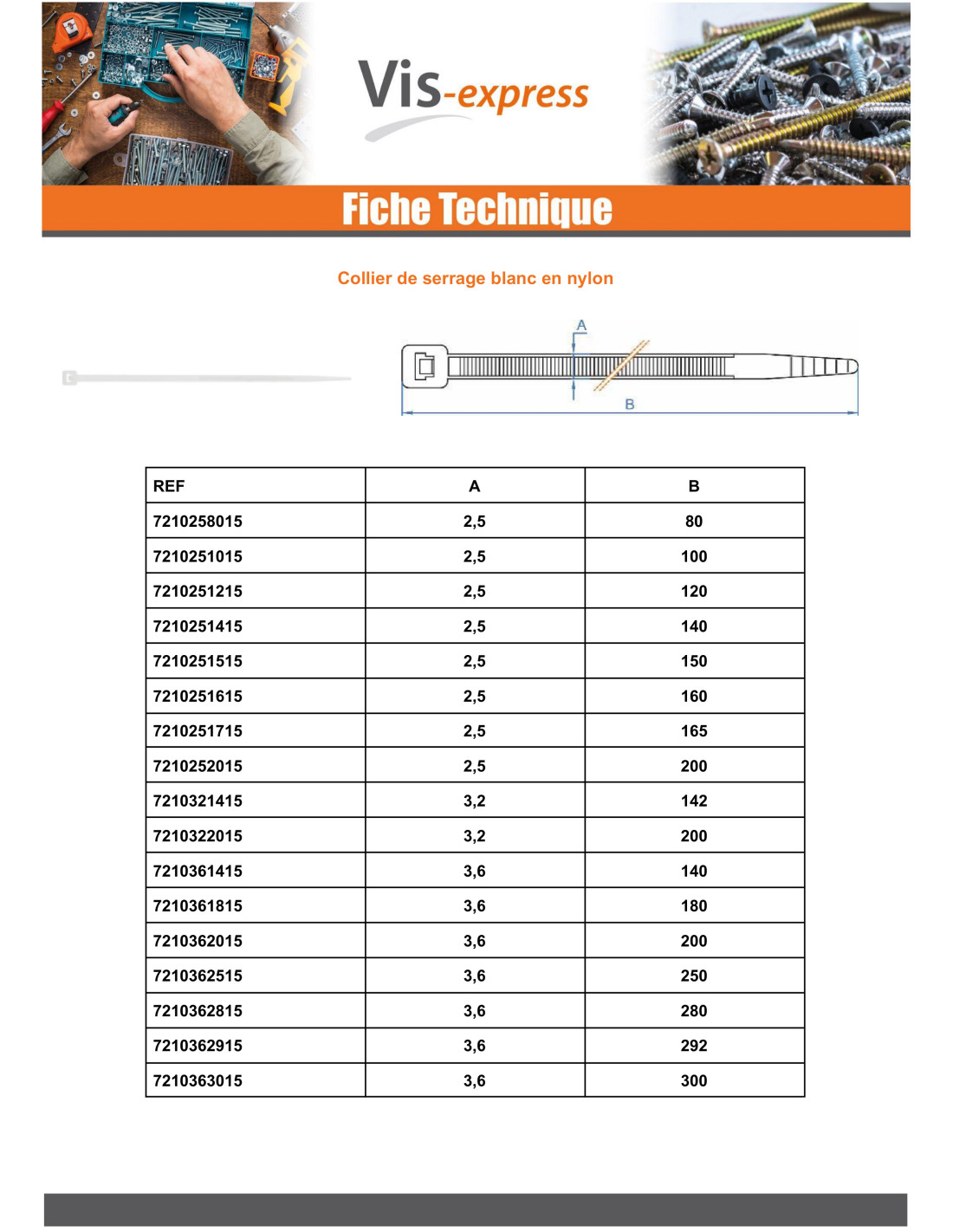 Hose clamp White 12.5X720 Nylon Other Reference : BN12720 3663072558182