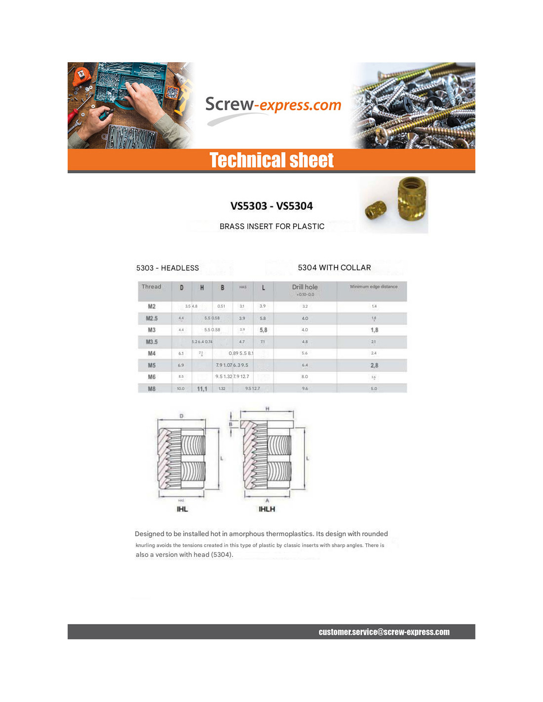 SELF TAPPING INSERT SET SCREW HEATFIX BRASS