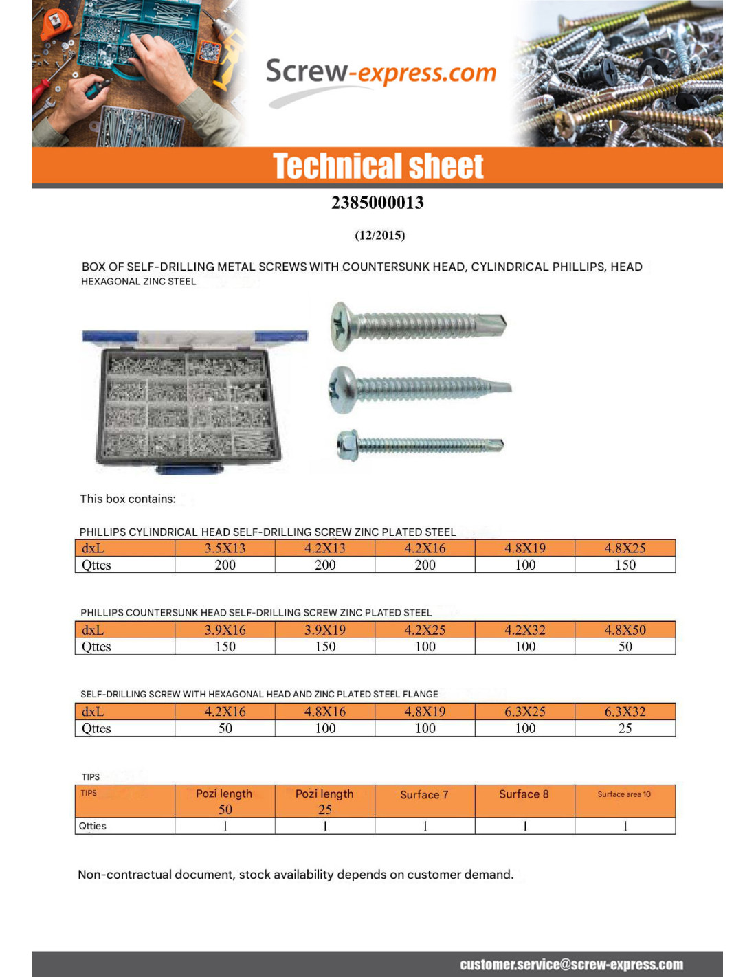 Set of 1775 Self Drilling Countersunk Head / Pan Head Phillips / Hexagonal Head Zinc Plated