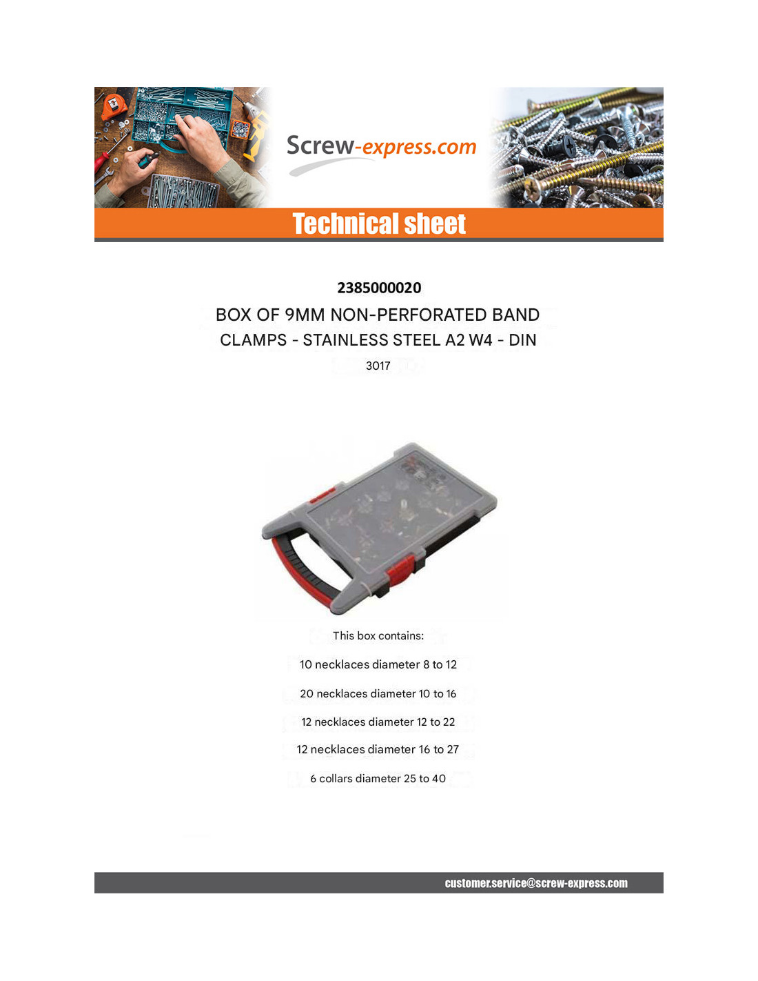 - Hose clamp W5 Diameter WIDTH BAND DIN3017